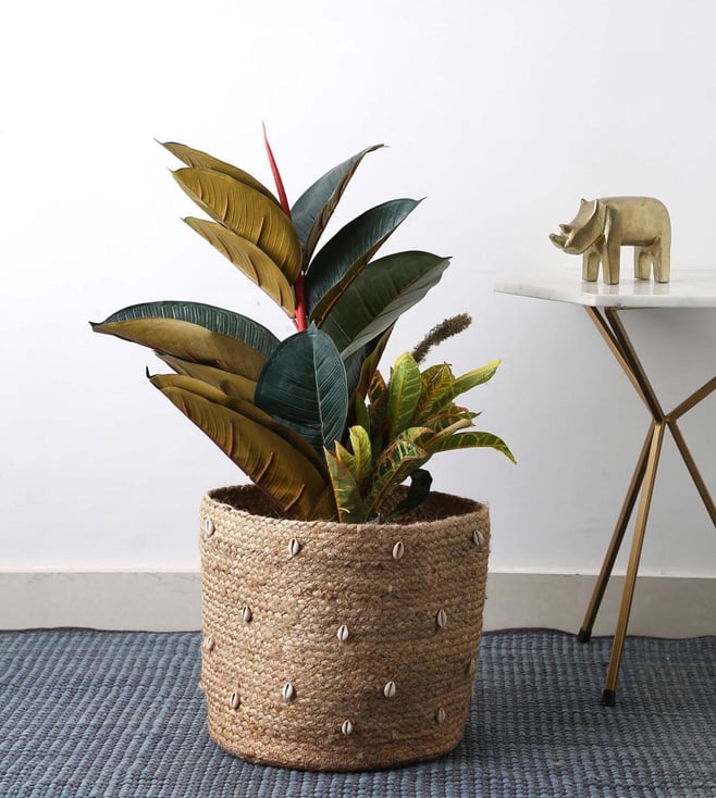 The natural jute and shells basket from Amoliconcepts works beautifully as a planter too for your living spaces. The multi-utility basket can be used for storage in your kids' room, kitchen or laundry basket. It is handwoven by artisans and is completely biodegradable. Opt for this eco-friendly option for decor and storage in your home. Disclaimer: All other items in the image are only for display purposes and will not be a part of the delivery content.