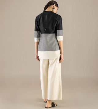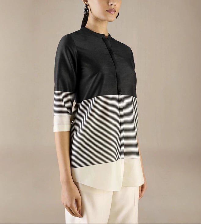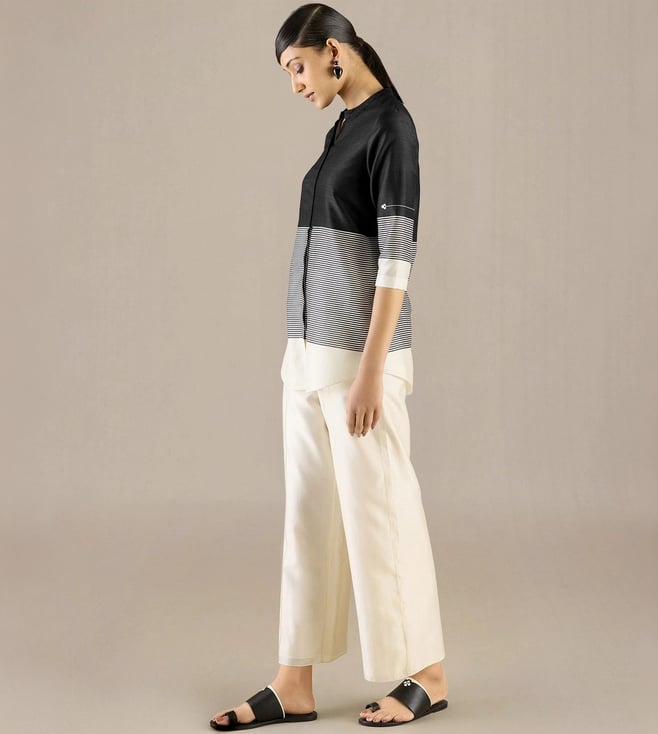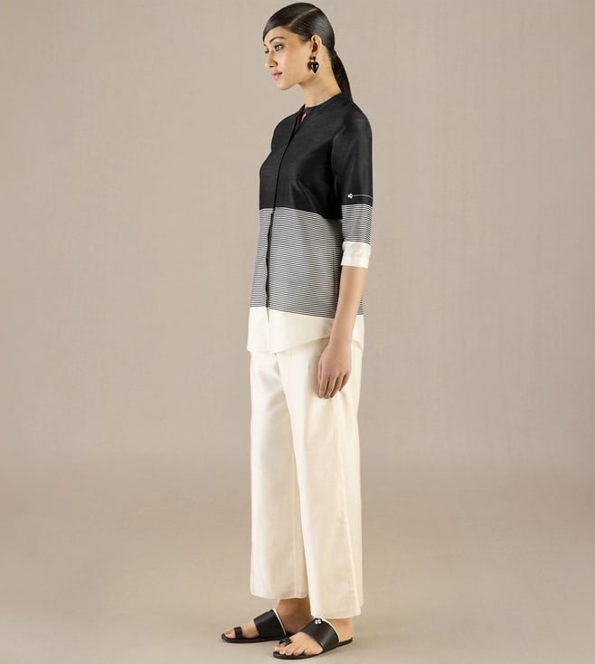 Make a statement that sticks by wearing this shirt set. Experience elegance, meticulously crafted from chanderi 70. A playful enamel button with the collection's motif centres the ensemble. It comes with pants. Disclaimer: Product colour may slightly vary due to photographic lighting sources. Country of Origin - India.