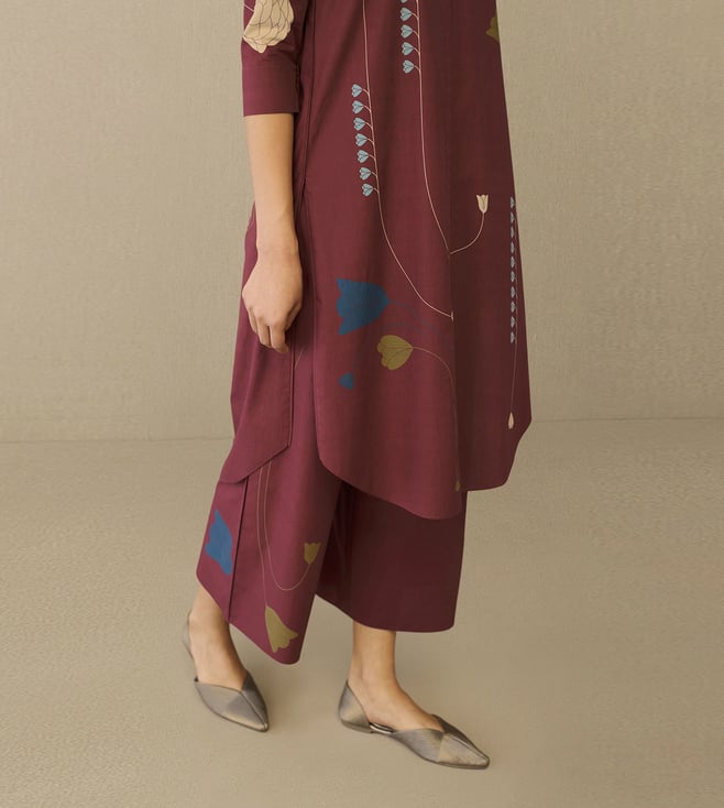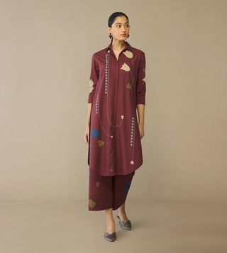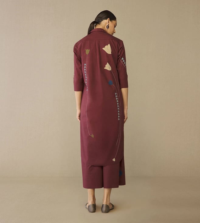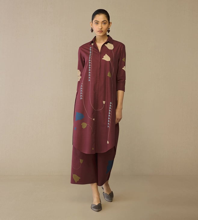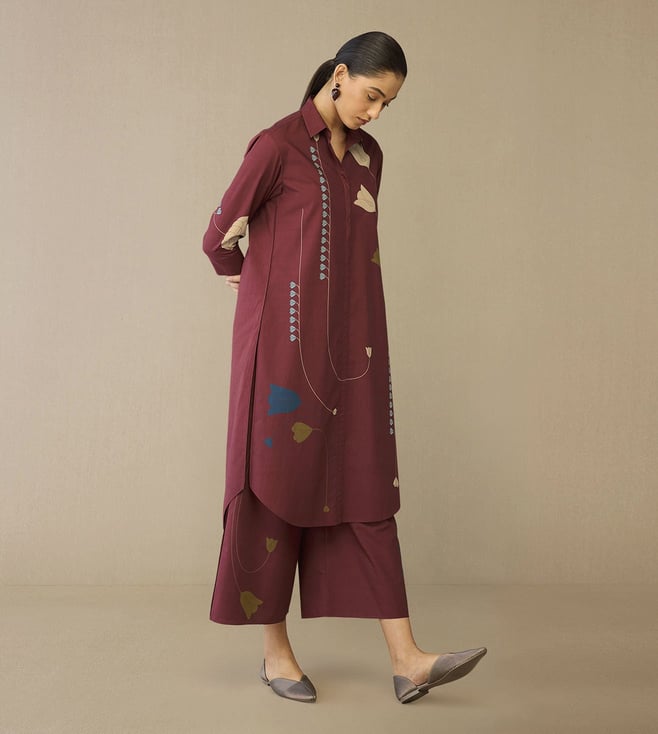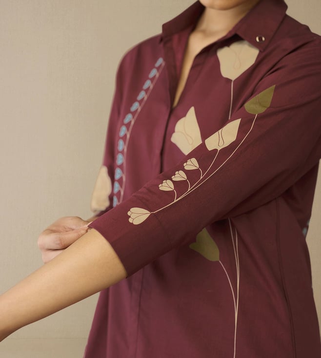 A cotton tunic as red as the clay in a potter¿s hands makes Parisa. A canvas for a medley of colourful blooms in shades such as ice blue, leaf green, a vibrant cobalt blue and a beige so light it borders on white, Parisa is made for the space in between seasons.
