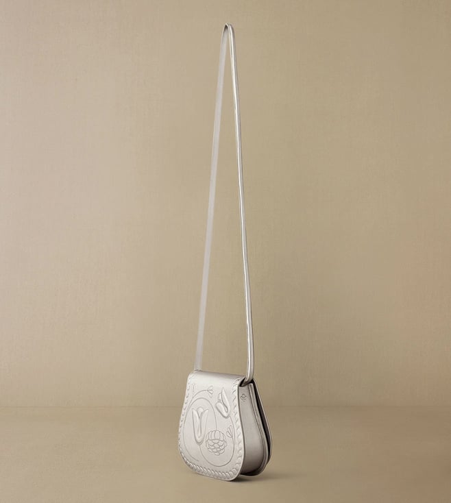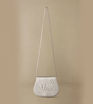 Meet our Alaida bag, the elegant life of the party who never misses a beat. With her sleek faux leather body in a dark silver hue, she's etched with blooming flowers, as domed tulip-like florals blossom alongside, all finished off with embossed borders. But Alaida isn't just about looks - her interior features card slots, a patch pocket, and a key holder - ensuring that wherever you go, she's ready to keep your essentials effortlessly ordered.