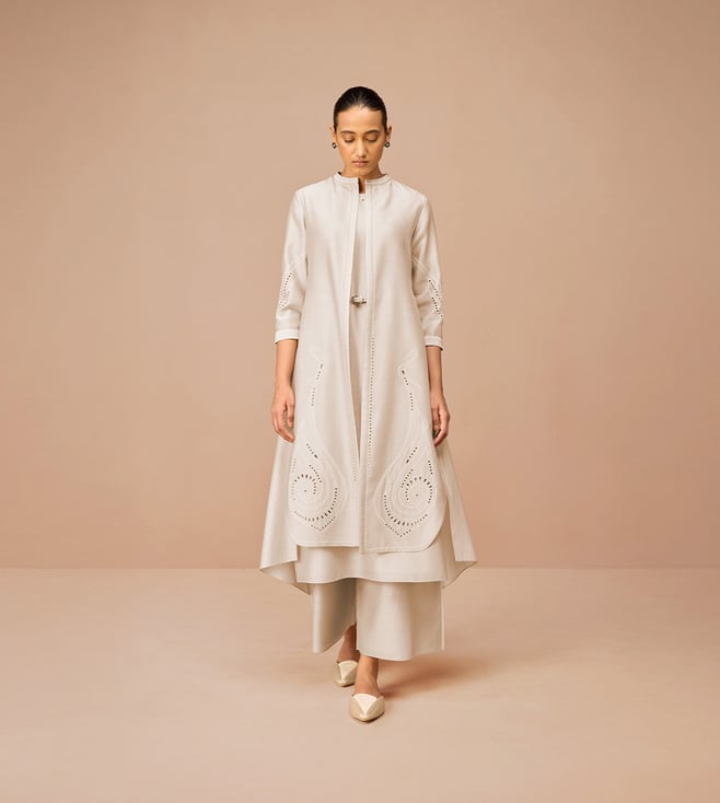 Brown Cotton Linen Tailored Blazer Fit Cape Set