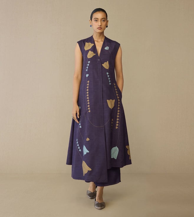 Indigo Cotton Linen Relaxed Fit Jacket Set
