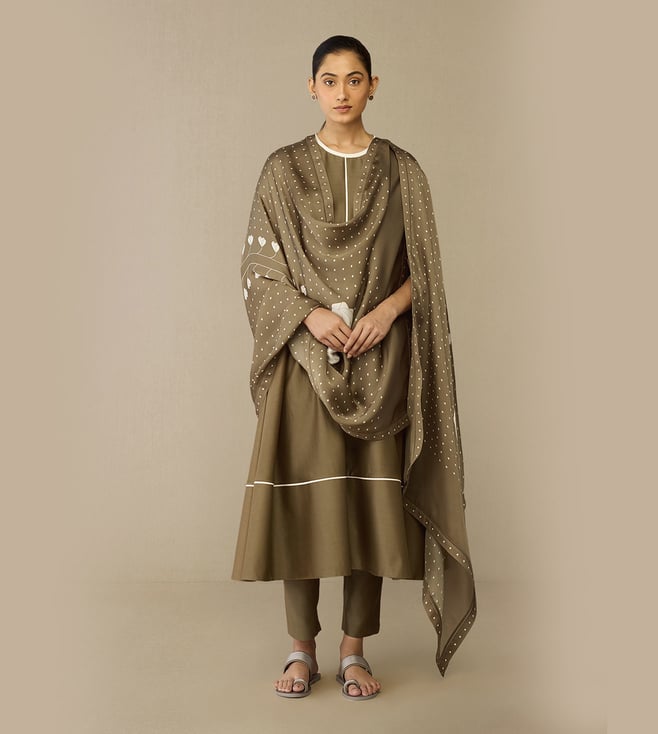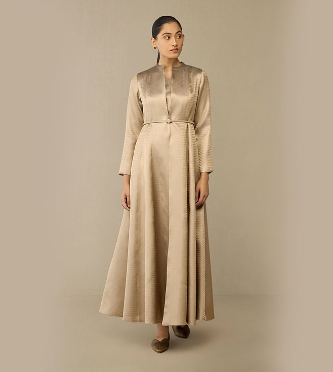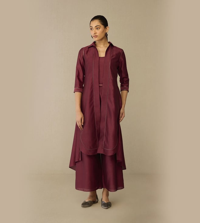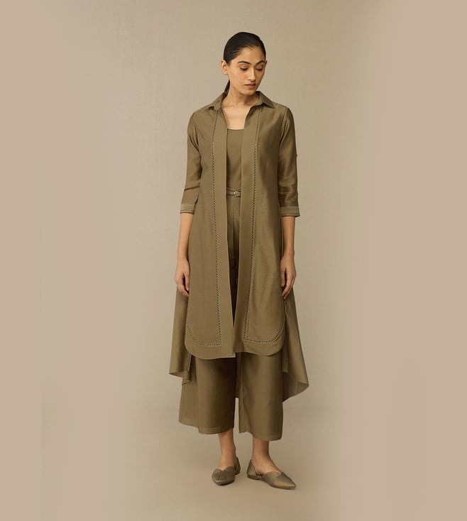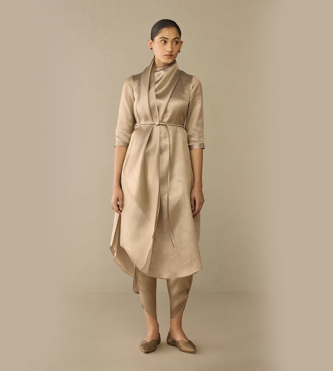Brown Cotton Linen Tailored Blazer Fit Cape Set