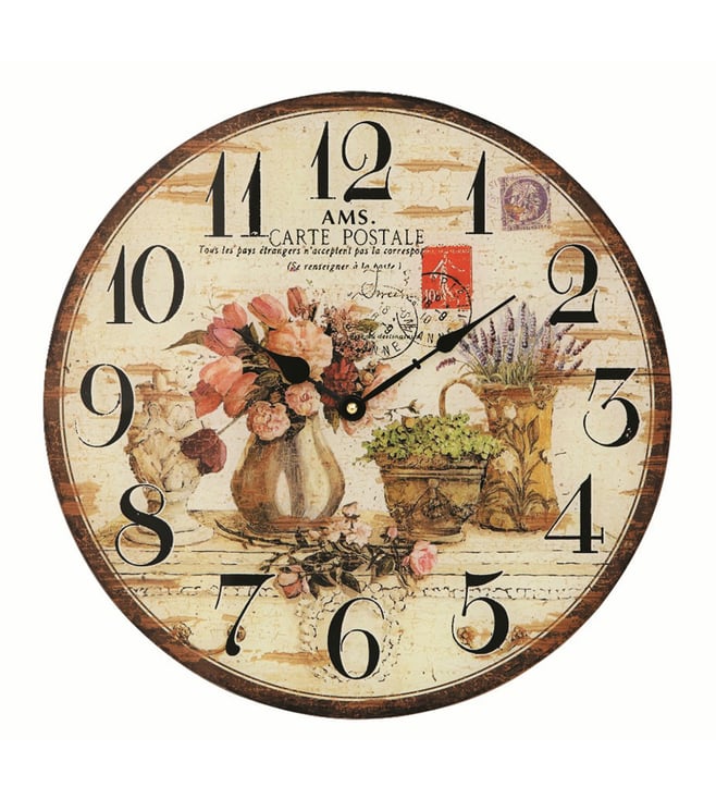 AMS CLOCKS Multicolour Printed Mineral Glass Analog Wall Clock