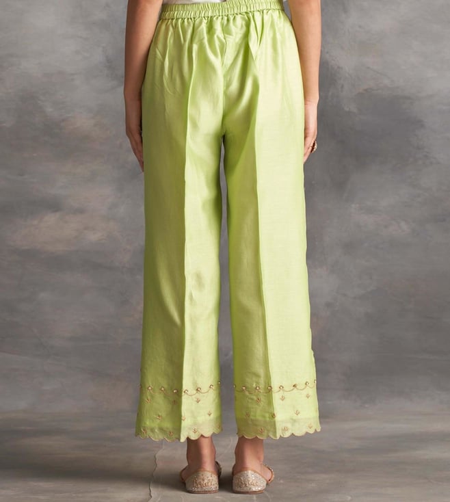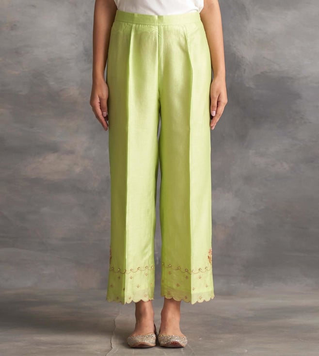 Anantaa by Roohi TrehanAnantaa by Roohi Light Green Silk Chanderi Palazzos