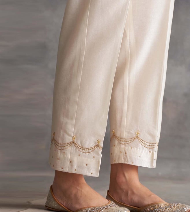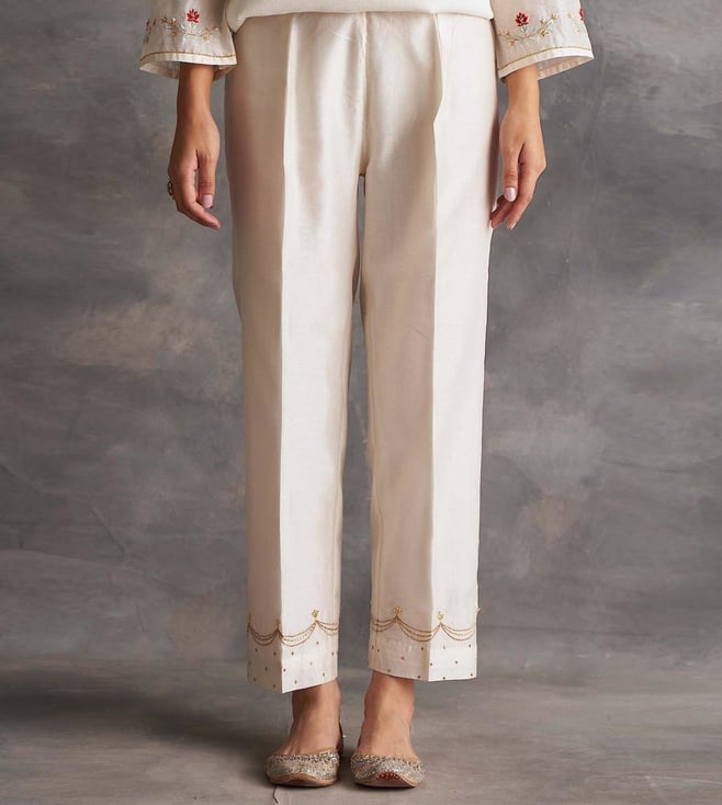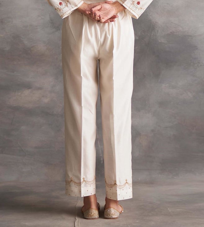 Anantaa by Roohi Off White Silk Chanderi Palazzos