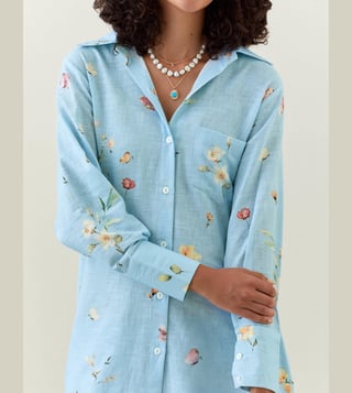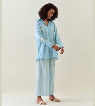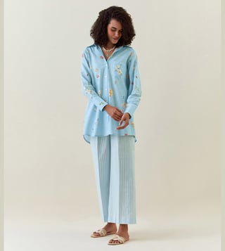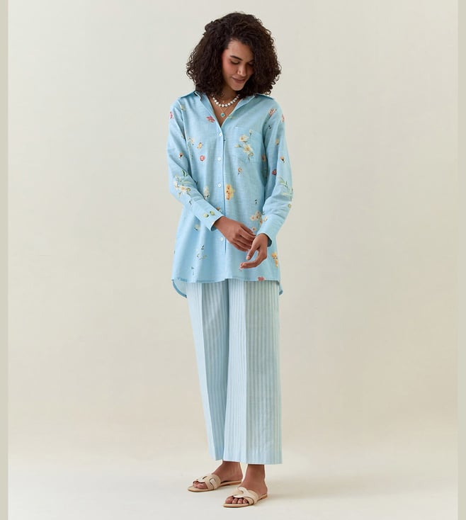 The Anantaa By Roohi Trehan Blue Cotton Linen Loose Fit Shirt This Women'S Dress Combines Traditional Fabric With Vibrant Colors For A Unique Style. Disclaimer: All Other Items In The Image Are Only For Display Purposes And Will Not Be A Part Of The Delivery Content. Product Colour May Slightly Vary Due To Photographic Lighting Sources. Country Of Origin - India.