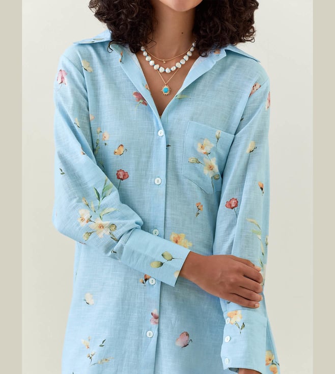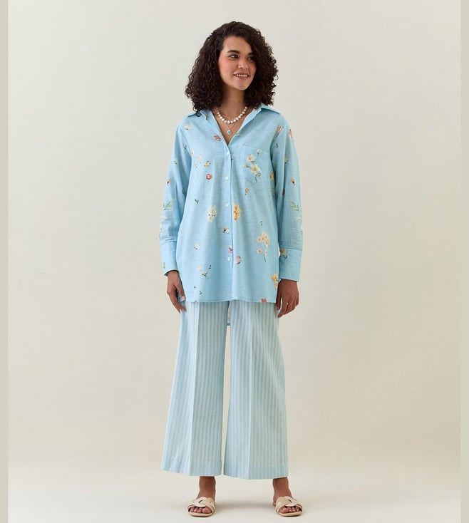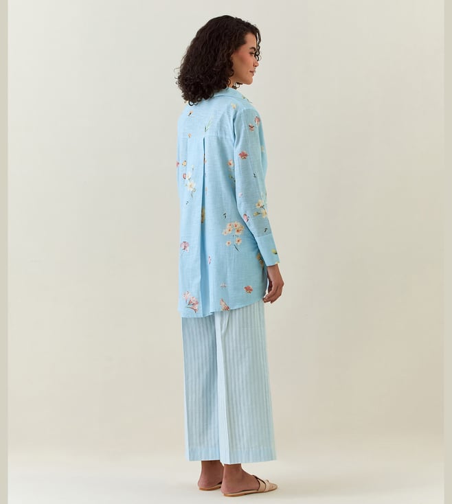 Anantaa by Roohi Trehan Blue Cotton Linen Loose Fit Printed Shirt