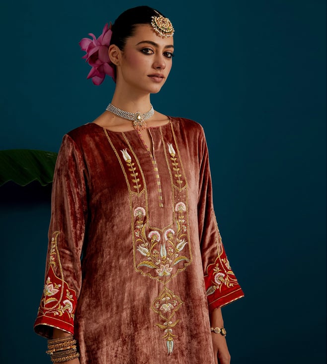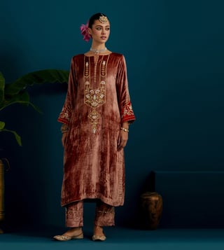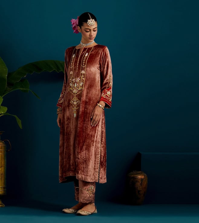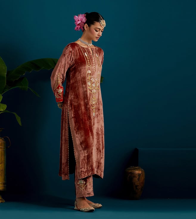 Discover The Crafted From Luxurious Anantaa By Roohi Trehan Dull Pink Velvet Comfort Fit Kurta Sets This Dress Offers Elegance And Versatility In Vibrant Hues. Disclaimer: All Other Items In The Image Are Only For Display Purposes And Will Not Be A Part Of The Delivery Content. Product Colour May Slightly Vary Due To Photographic Lighting Sources. Country Of Origin - India.