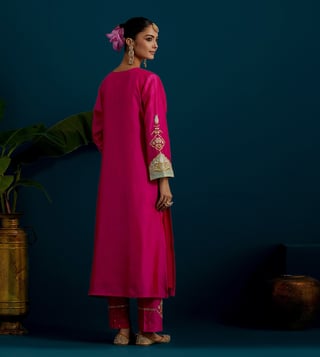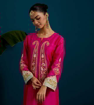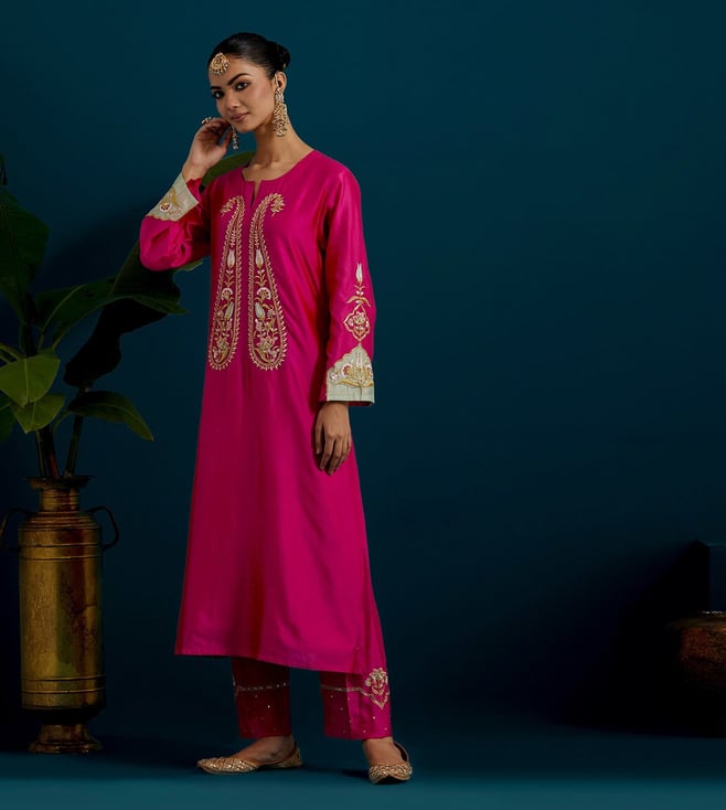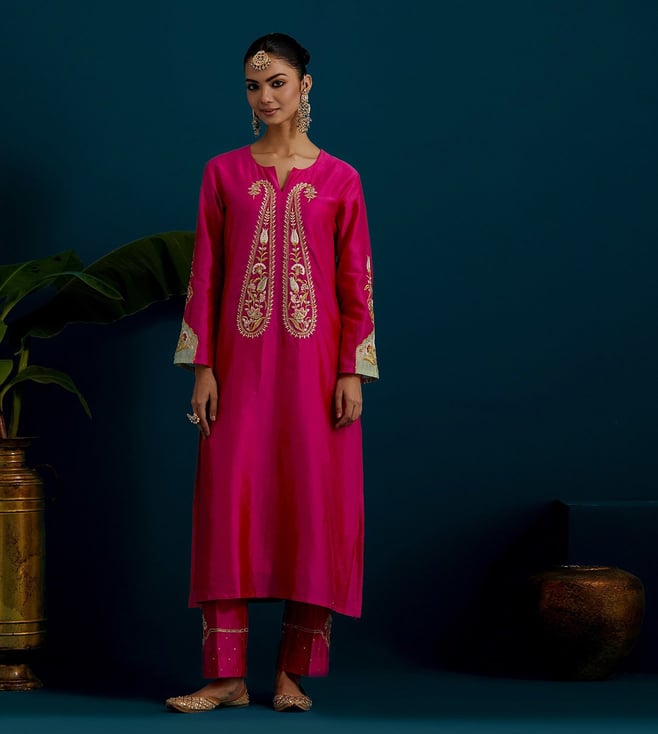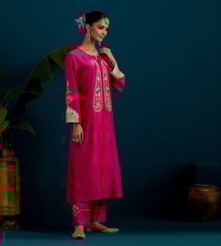 Anantaa by Roohi Trehan Fuchsia Chanderi Comfort Fit Embroidered Kurtas