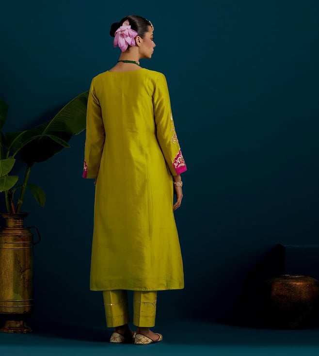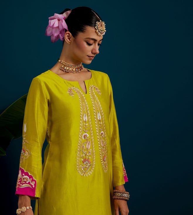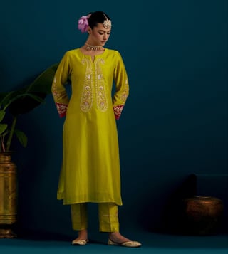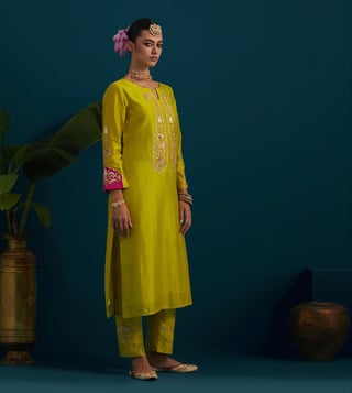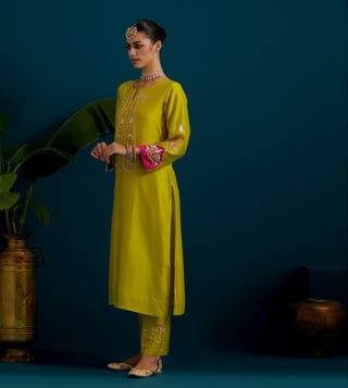 Discover The Crafted From Luxurious Anantaa By Roohi Trehan Lime Green Chanderi Comfort Fit Kurta Sets This Dress Offers Elegance And Versatility In Vibrant Hues. Disclaimer: All Other Items In The Image Are Only For Display Purposes And Will Not Be A Part Of The Delivery Content. Product Colour May Slightly Vary Due To Photographic Lighting Sources. Country Of Origin - India.