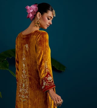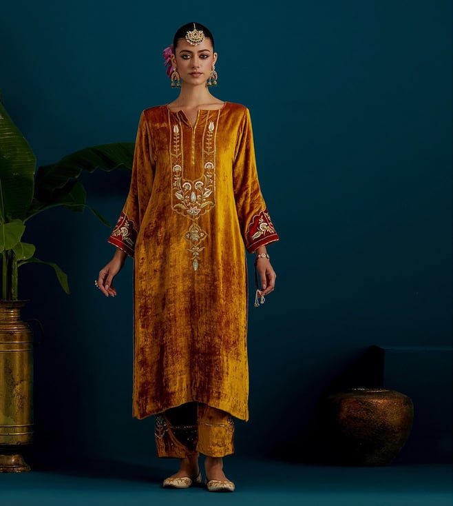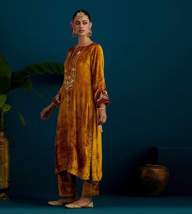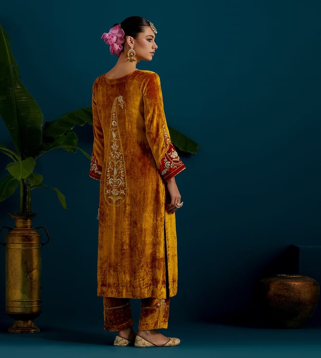 Anantaa by Roohi Trehan Mustard Velvet Comfort Fit Embroidered Kurtas