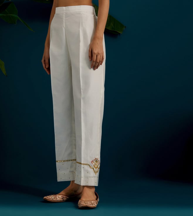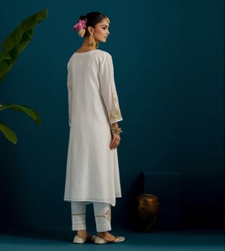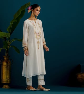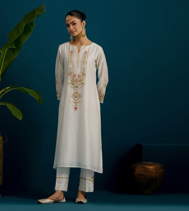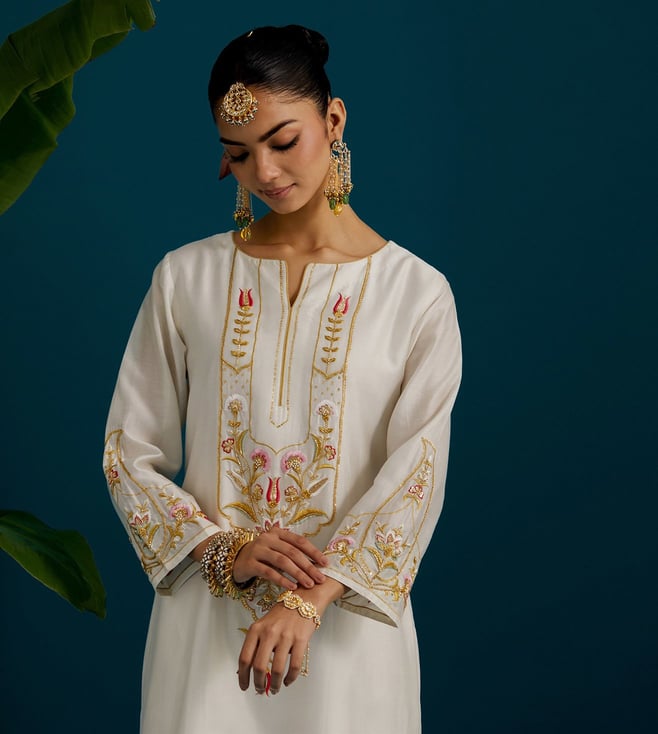 Anantaa by Roohi Trehan Off White Chanderi Comfort Fit Embroidered Kurts Set