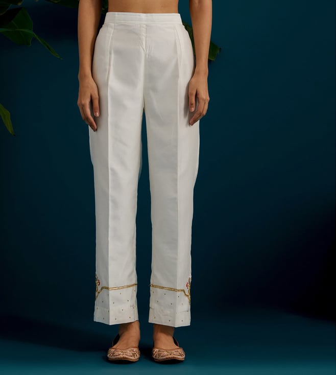 The Anantaa By Roohi Trehan Off White Chanderi Comfort Fit Kurta Sets This Women'S Dress Combines Traditional Fabric With Vibrant Colors For A Unique Style. Disclaimer: All Other Items In The Image Are Only For Display Purposes And Will Not Be A Part Of The Delivery Content. Product Colour May Slightly Vary Due To Photographic Lighting Sources. Country Of Origin - India.