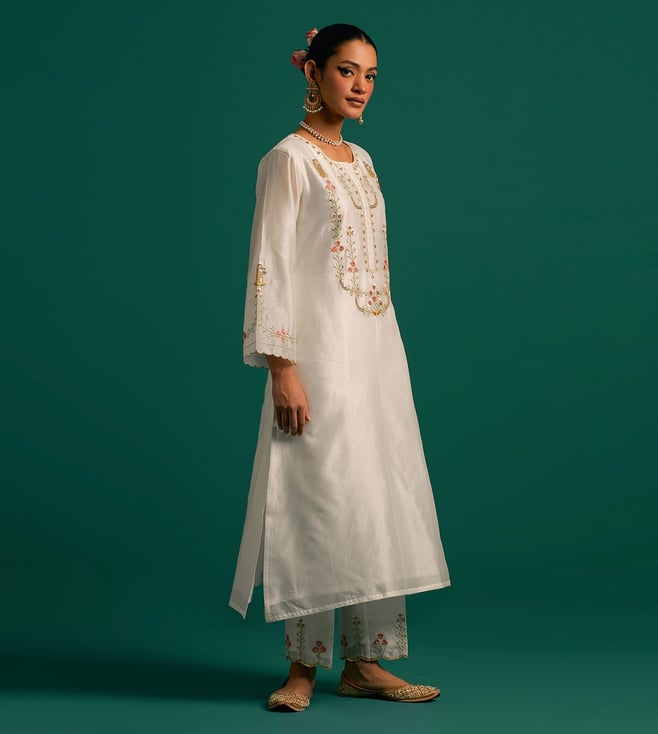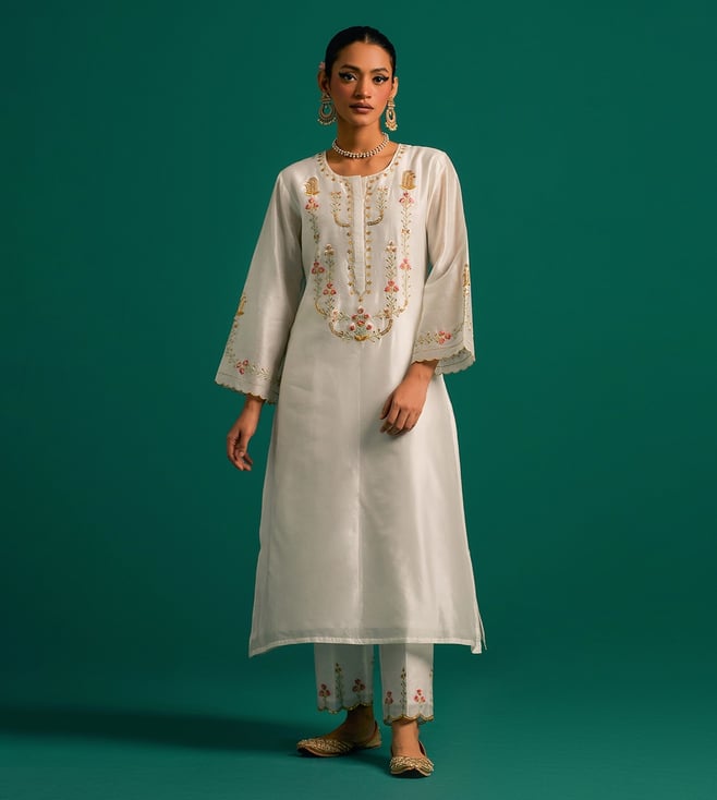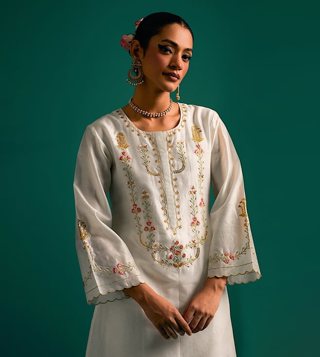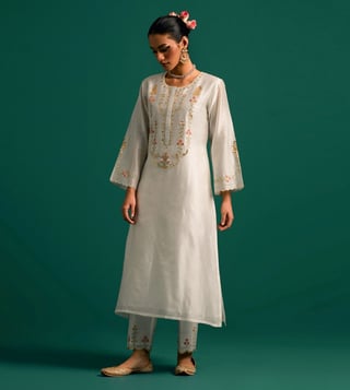 Anantaa by Roohi Trehan Off White Chanderi Embroidered Kurta