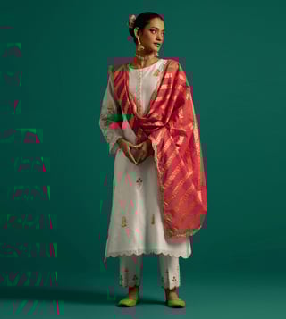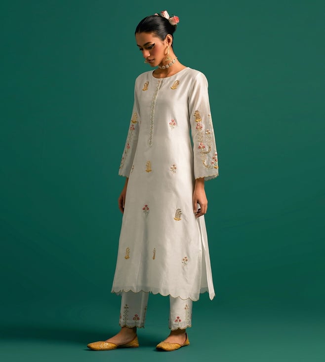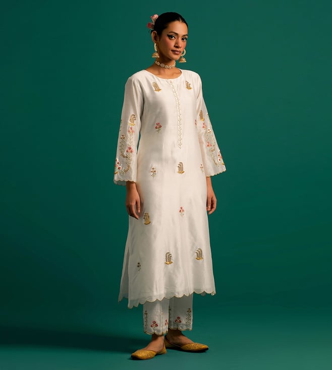 Anantaa by Roohi Trehan Off White Chanderi Embroidered Kurta