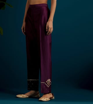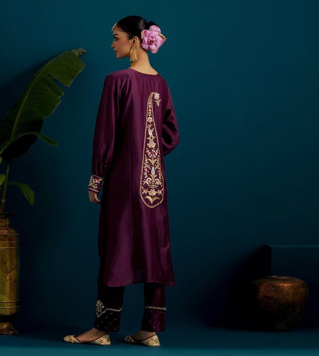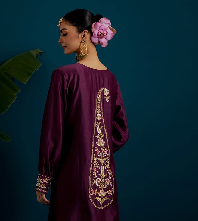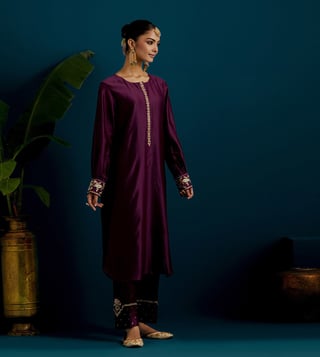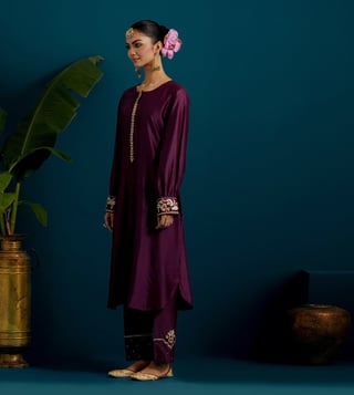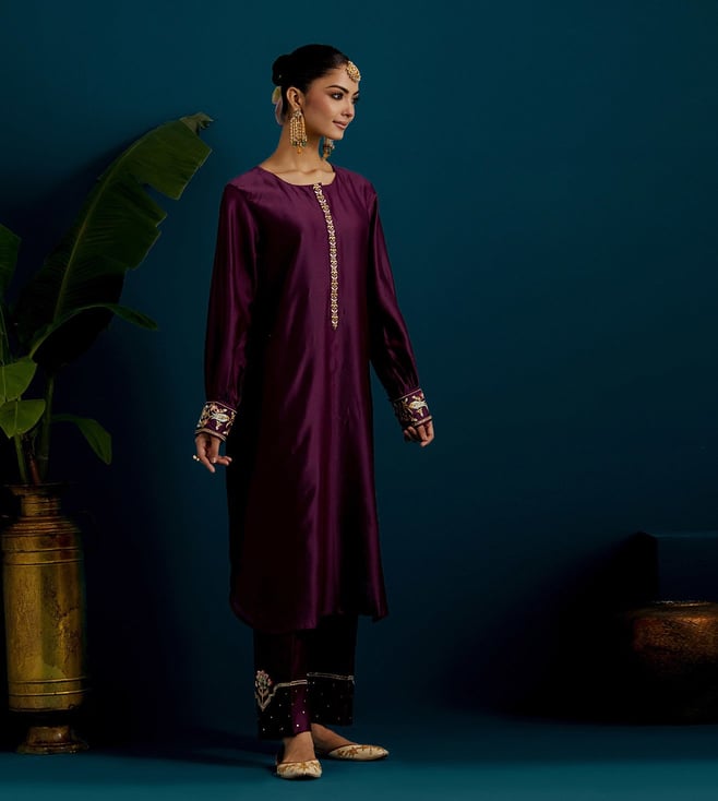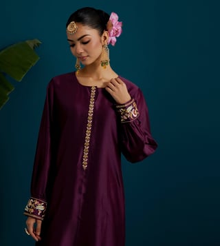 Anantaa by Roohi Trehan Purple Chanderi Comfort Fit Embroidered Kurts Set