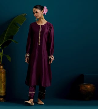 Elevate Your Style With The Designed For Women, Anantaa By Roohi Trehan Purple Chanderi Comfort Fit Kurta Sets This Vibrant Piece Combines Comfort And Elegance. Disclaimer: All Other Items In The Image Are Only For Display Purposes And Will Not Be A Part Of The Delivery Content. Product Colour May Slightly Vary Due To Photographic Lighting Sources. Country Of Origin - India.