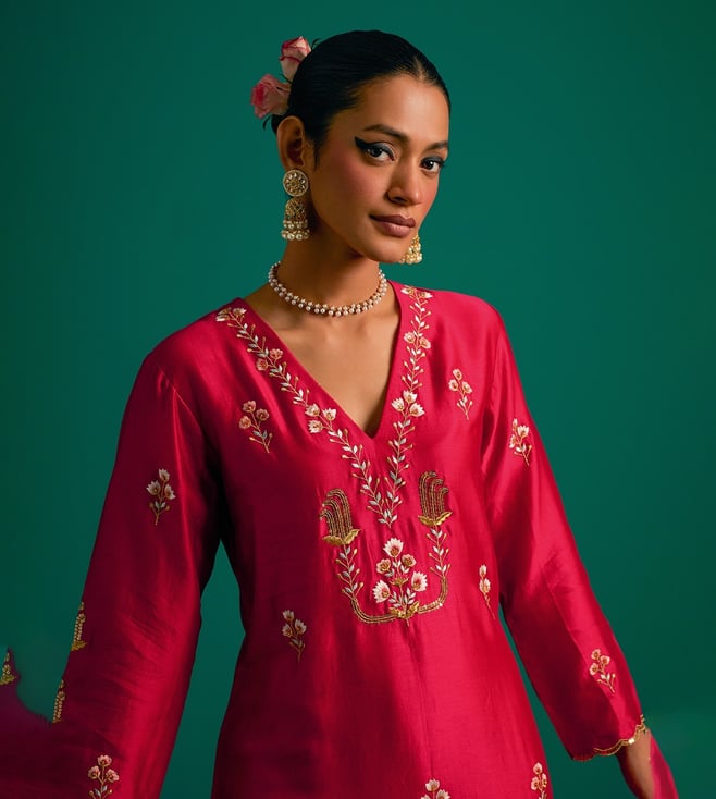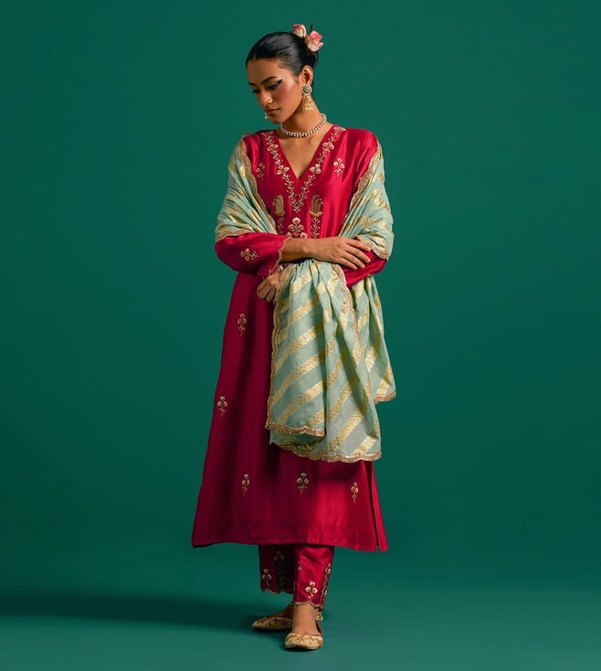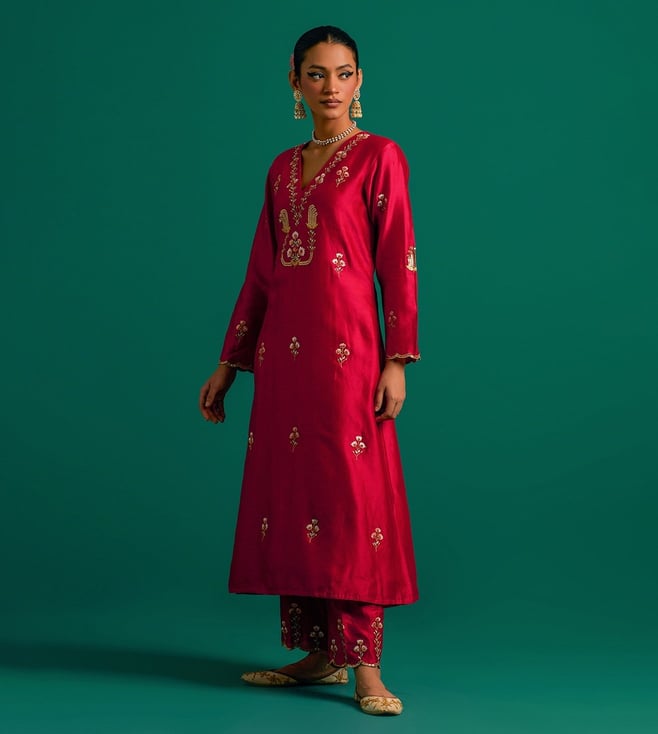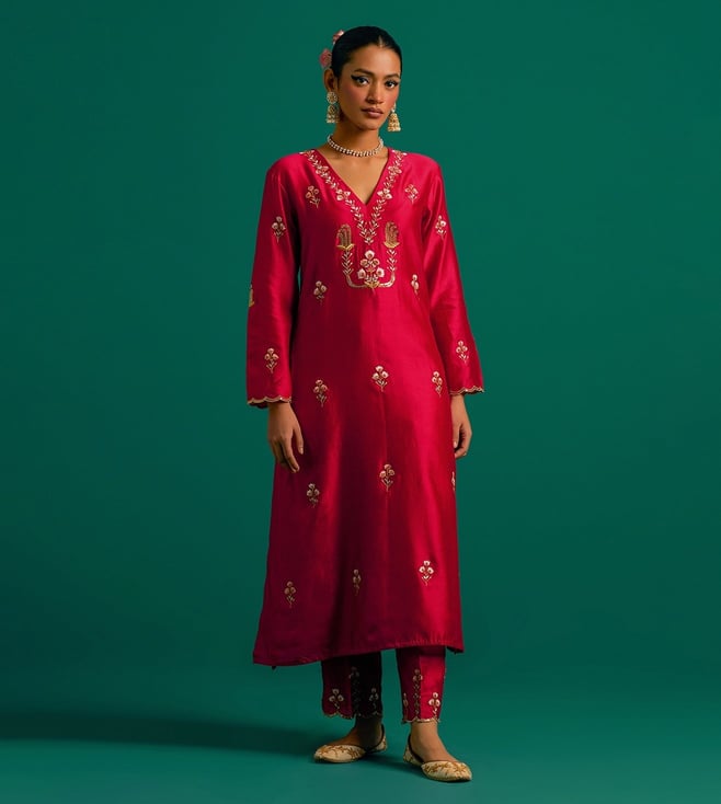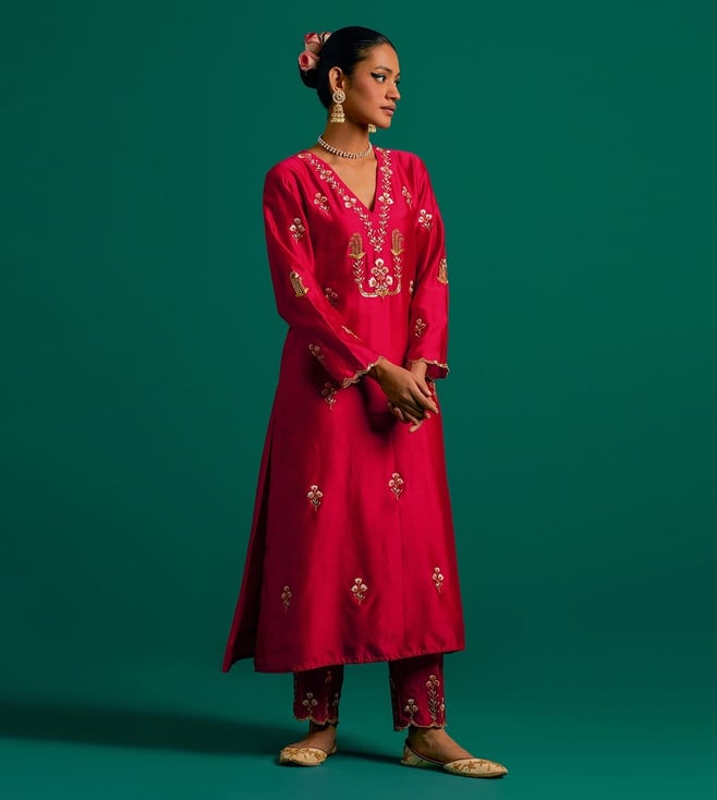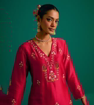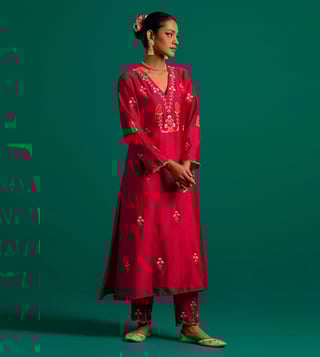 Anantaa by Roohi Trehan Red Chanderi Embroidered Kurta