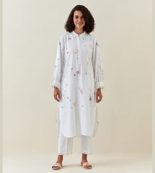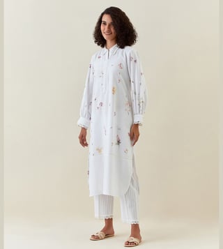 Discover The Crafted From Luxurious Anantaa By Roohi Trehan White Cotton Linen Loose Fit Kurta This Dress Offers Elegance And Versatility In Vibrant Hues. Disclaimer: All Other Items In The Image Are Only For Display Purposes And Will Not Be A Part Of The Delivery Content. Product Colour May Slightly Vary Due To Photographic Lighting Sources. Country Of Origin - India.