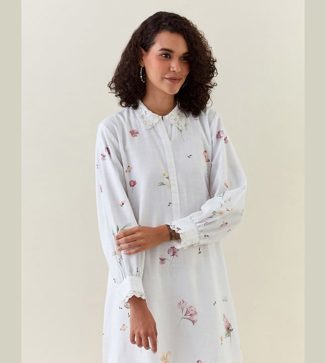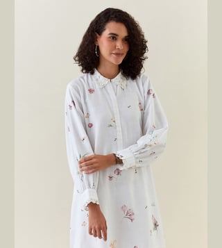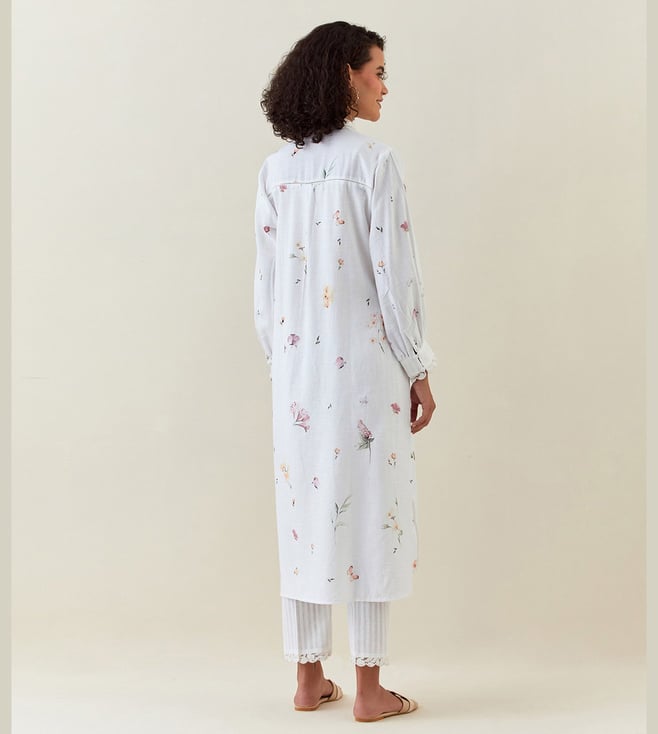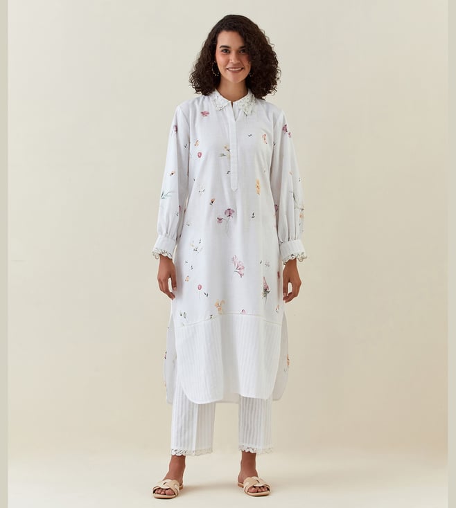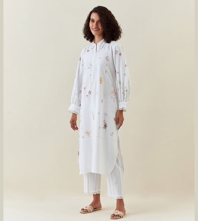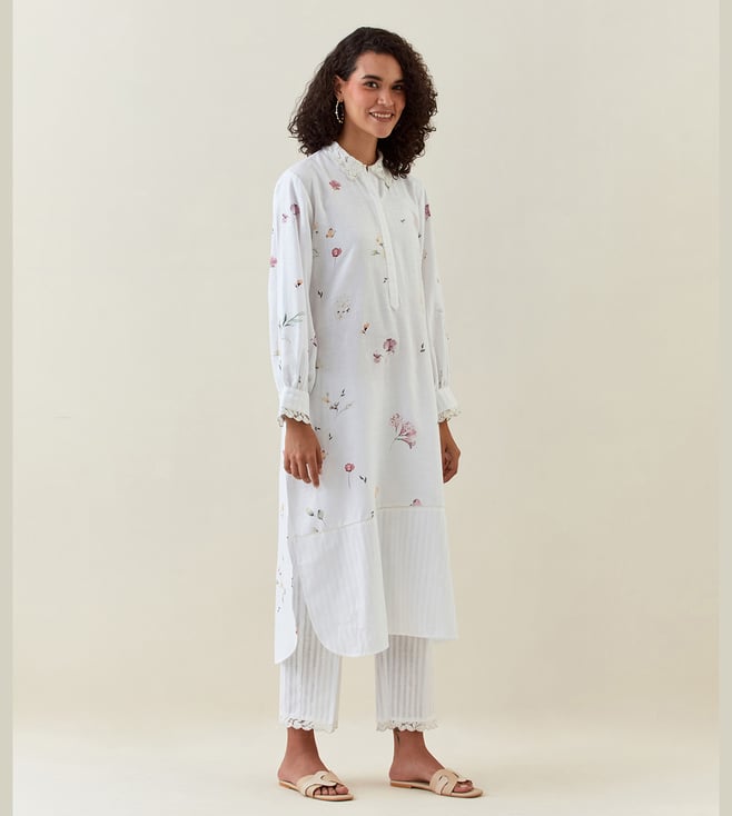 Anantaa by Roohi Trehan White Cotton Linen Loose Fit Printed Kurta