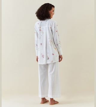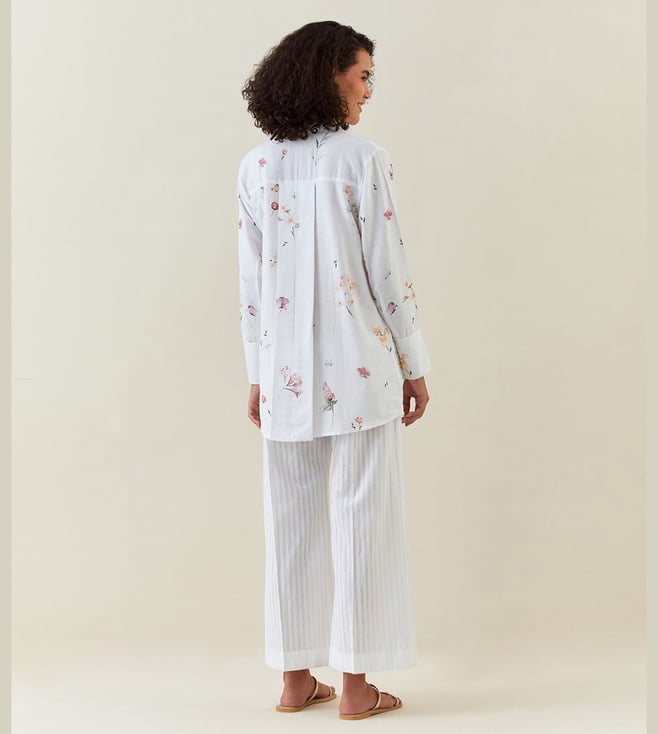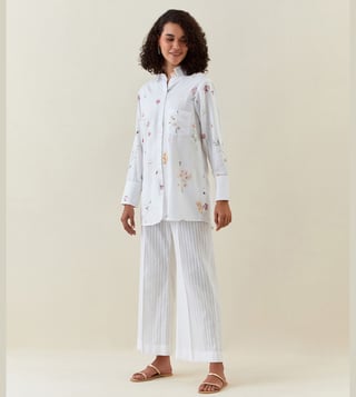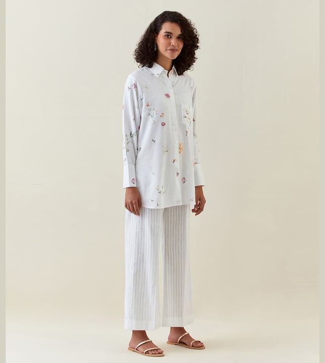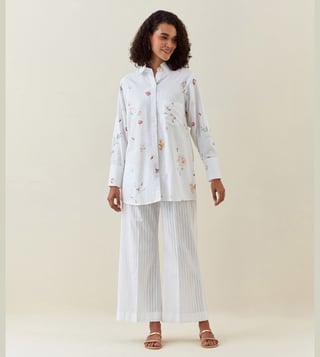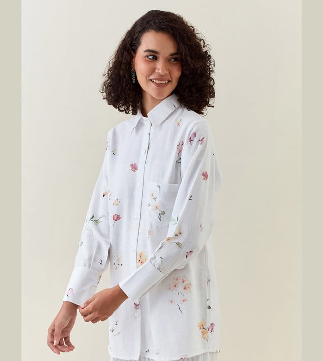 Anantaa by Roohi Trehan White Cotton Linen Loose Fit Printed Shirt