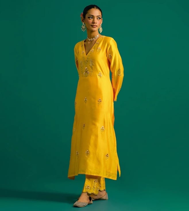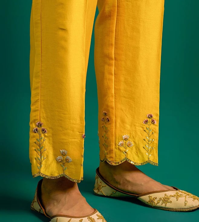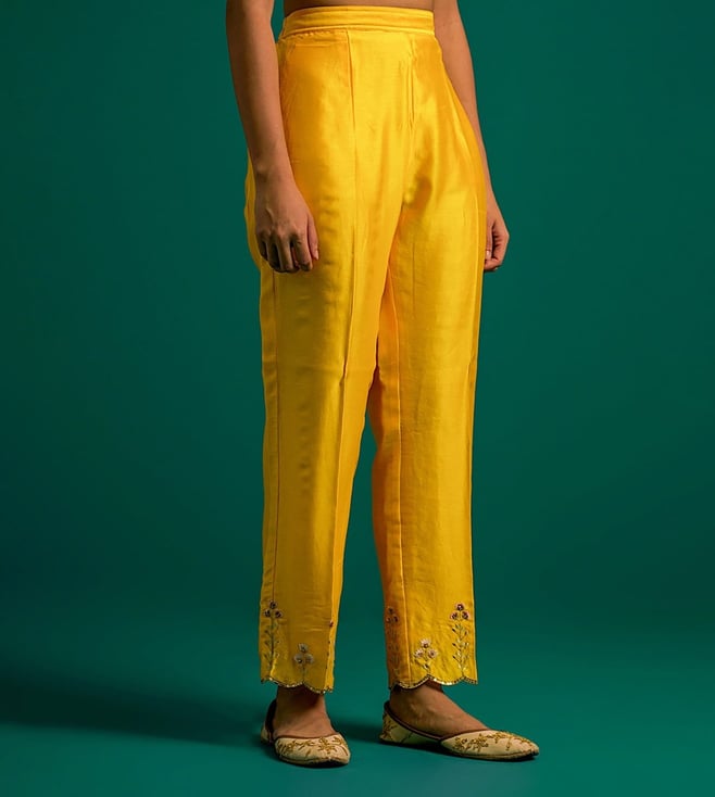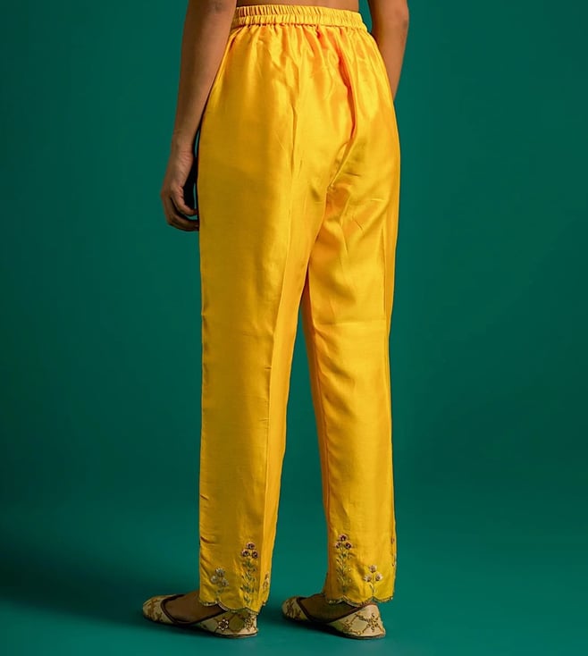 Anantaa by Roohi Trehan Yellow Chanderi Embroidered Palazzo