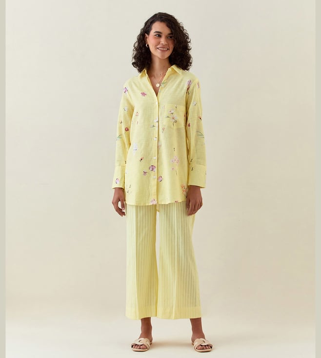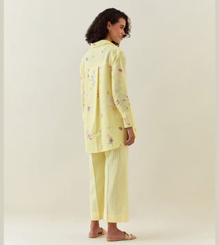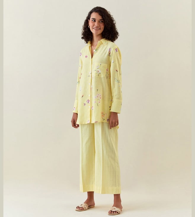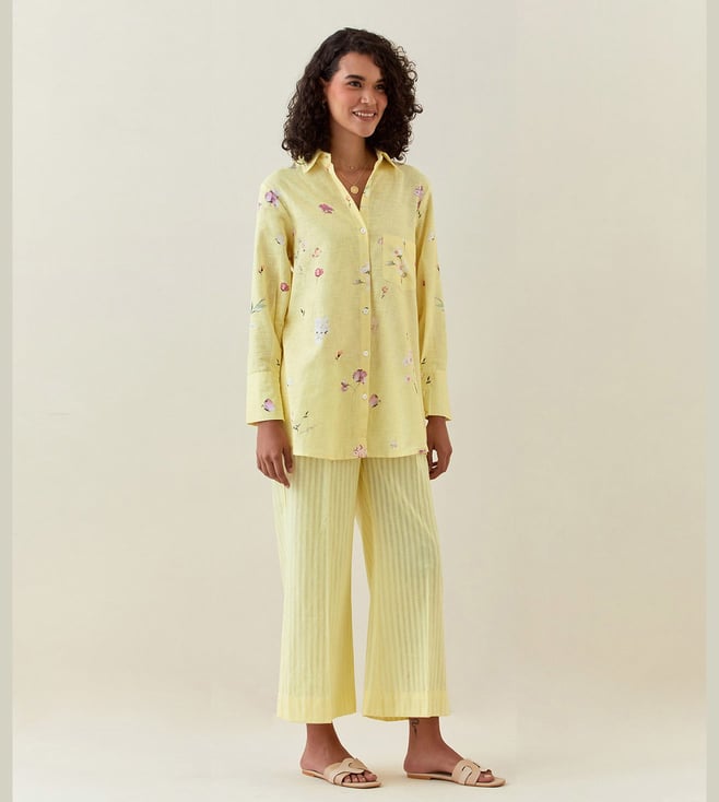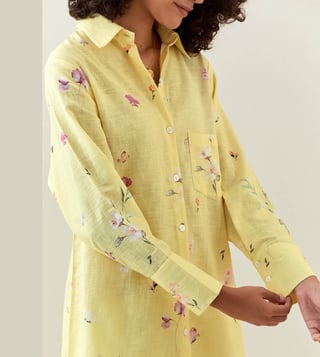 Anantaa by Roohi Trehan Yellow Cotton Linen Loose Fit Printed Shirt