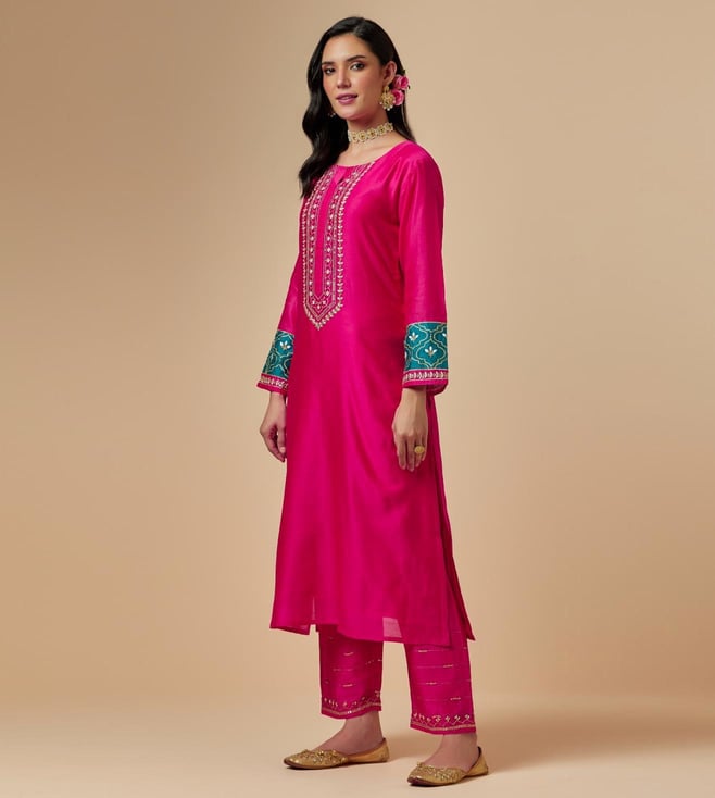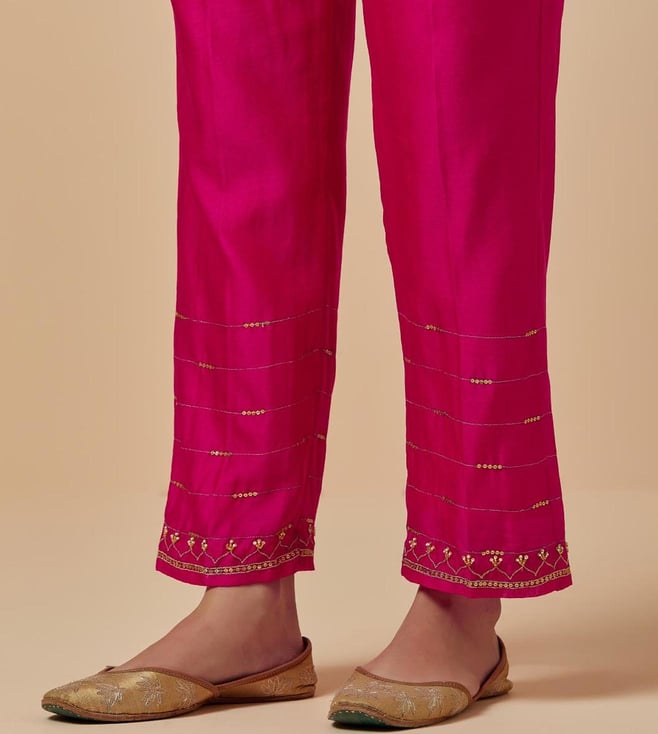 Anantaa by Roohi TrehanAnantaa Fuchsia Meher Silk Chanderi Palazzo With Hand Embroidery