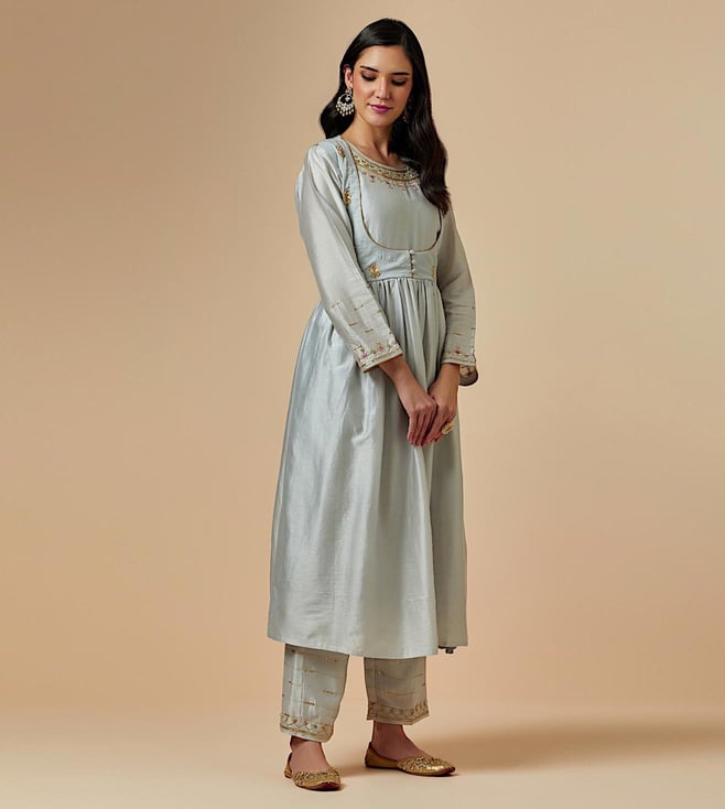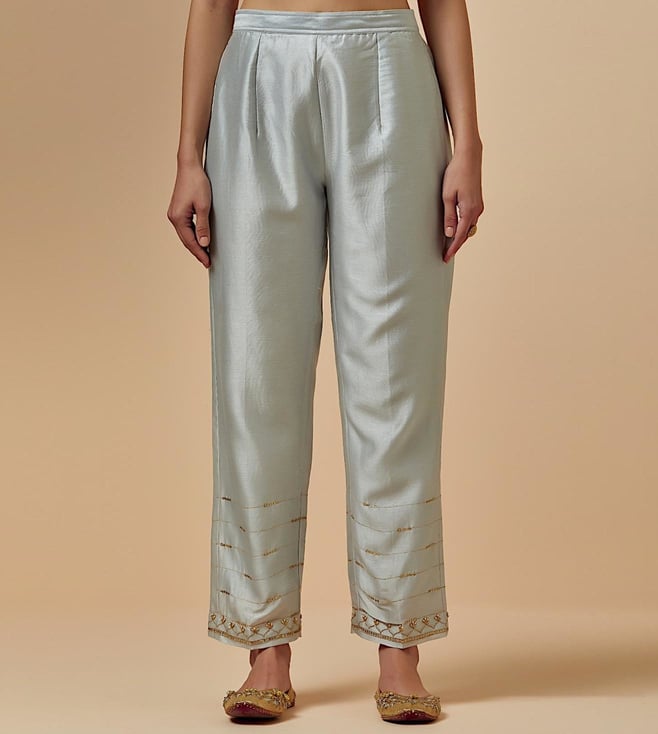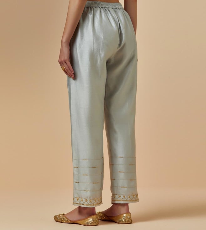 Anantaa by Roohi TrehanAnantaa Grey Meher Silk Chanderi Palazzo With Hand Embroidery