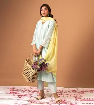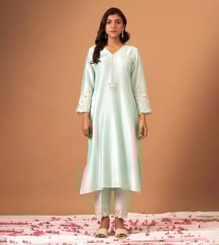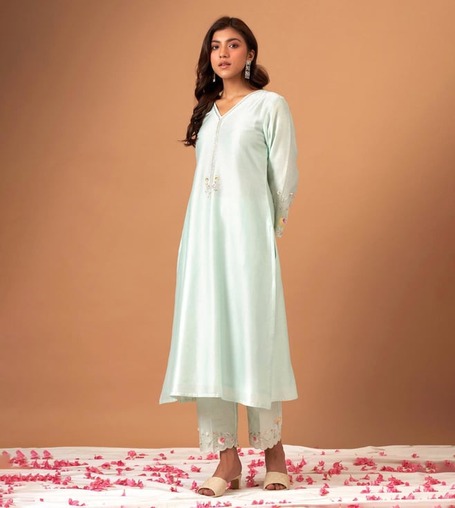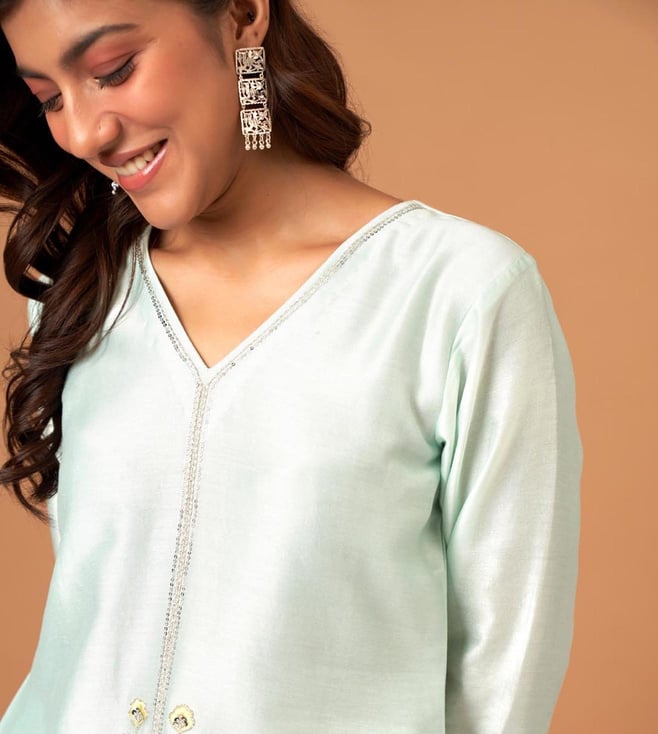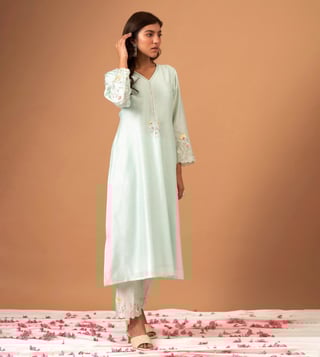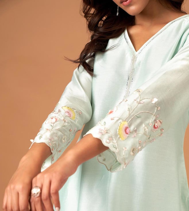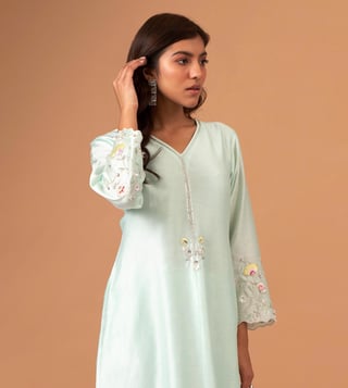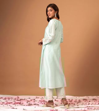 Anantaa by Roohi TrehanAnantaa Mint Silk Chanderi Kurta With Scallop Sleeves