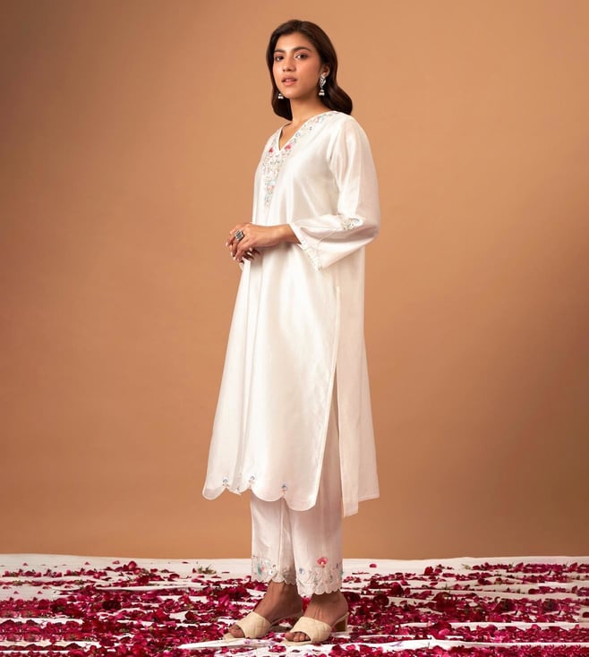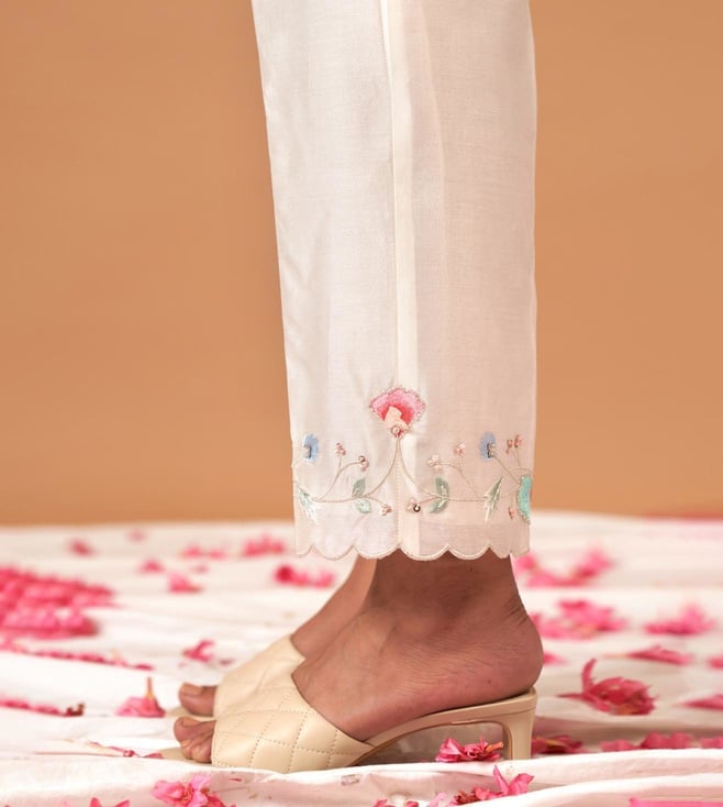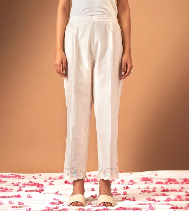 Anantaa by Roohi TrehanAnantaa Off White Silk Chanderi Palazzo With Hand Embroidery