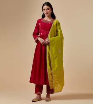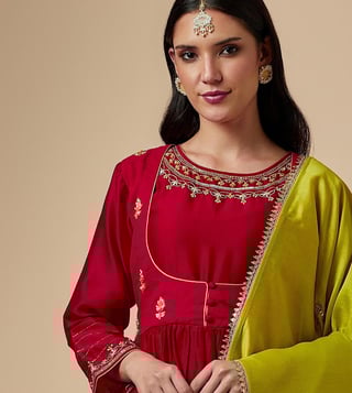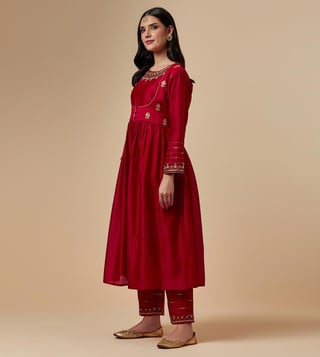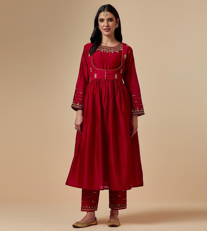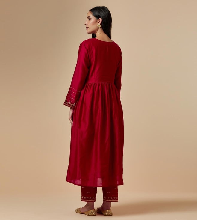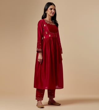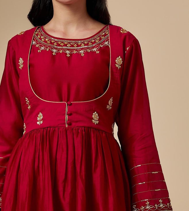 Anantaa by Roohi TrehanAnantaa Red Meher Silk Chanderi Hand Embroidered Kurta With Gathers