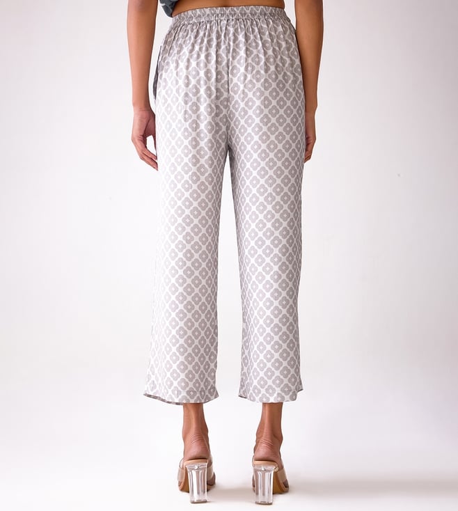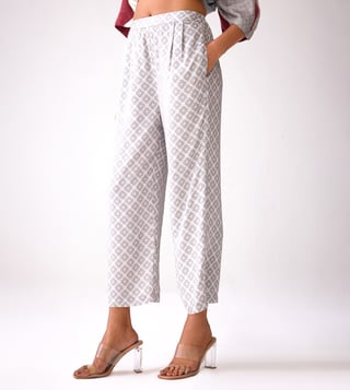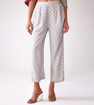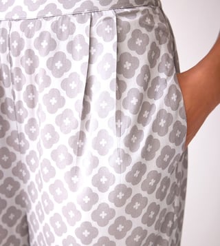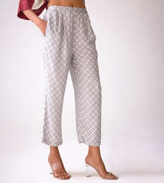 Embrace effortless elegance with these grey, regular-fit trousers crafted from luxurious satin. The smooth, flowing fabric drapes beautifully, creating a flattering silhouette. The subtle sheen adds a touch of sophistication, while the relaxed fit ensures maximum comfort. The standout feature? The playful print sleeves, adding a touch of whimsy and personality to your look. Perfect for everything from casual outings to evening events, these trousers are a versatile wardrobe essential.