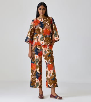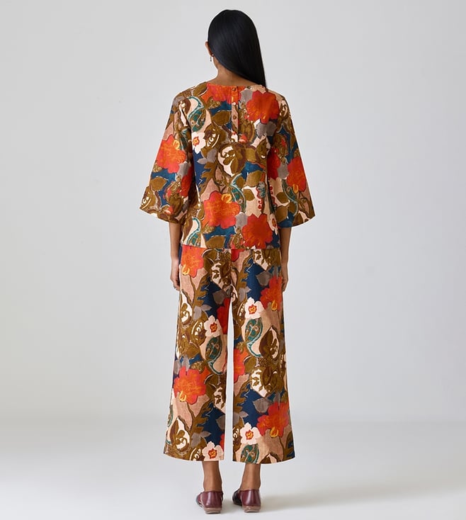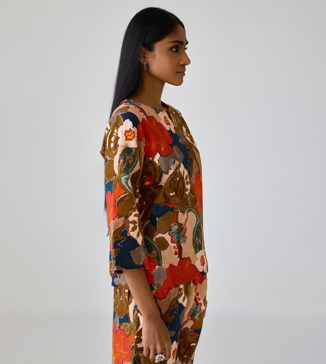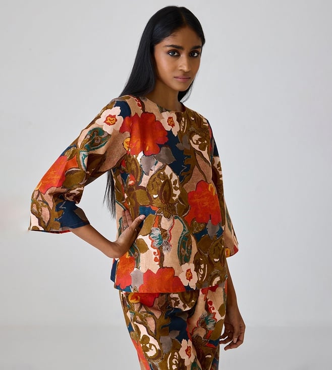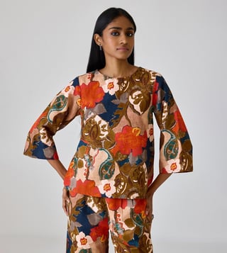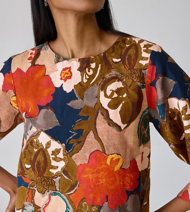 Ancestry Multi Cotton Linen Print 3/4Th Sleeve Top