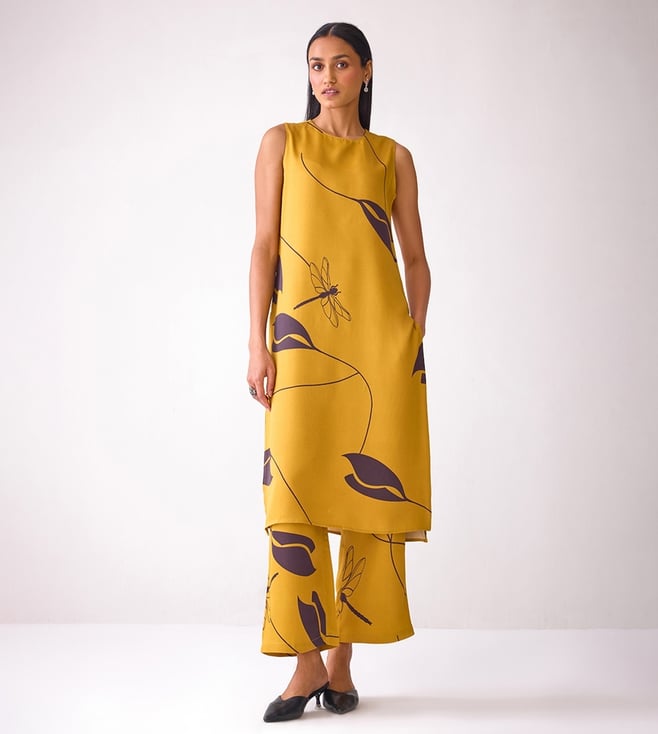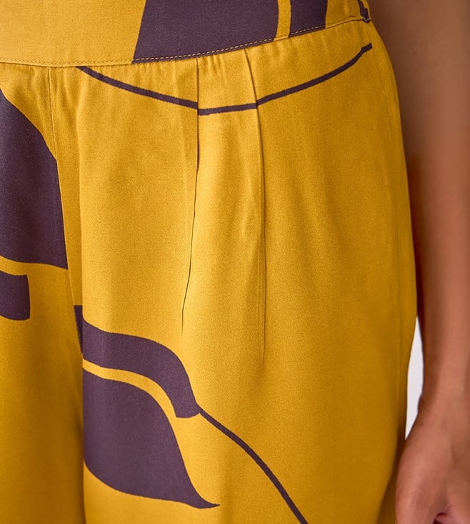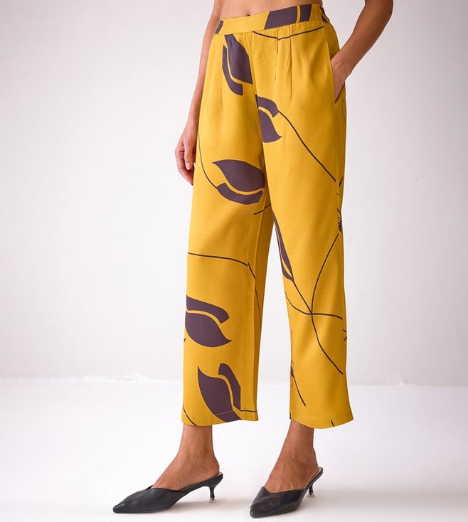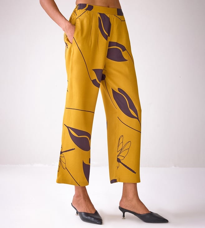 Ancestry Mustard Satin Print Trousers
