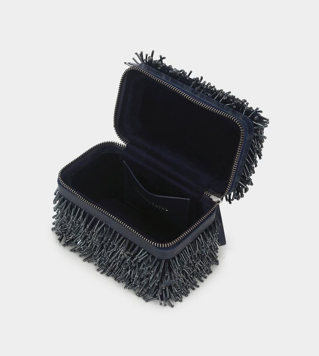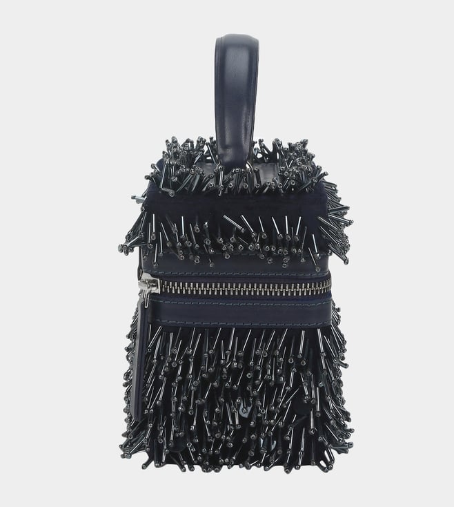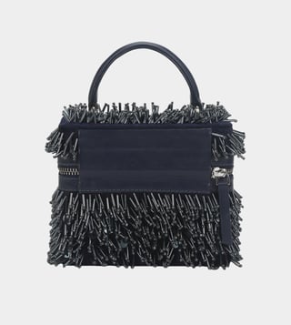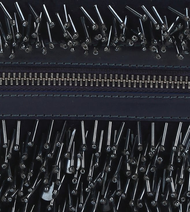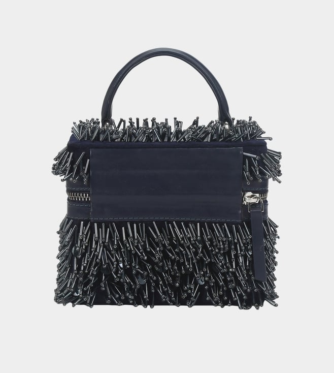 Take your style to the next level by carrying this handbag made using suede. It is handcrafted with tube and holographic embroidery all over. It comes with a sturdy handle and a rich lining. Disclaimer: Product colour may slightly vary due to photographic lighting sources. Country of Origin - India.