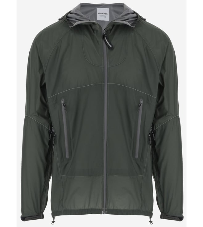Elevate your style with the And Wander Olive Jacket. Logo printed, hooded, long sleeves, front zipper, pockets. Products purchased from Darveys are supported exclusively by the warranty/exchange policies of Darveys and its partner boutiques. Brand owners and their channel partners are not responsible for exchange/warranty services for items purchased through Darveys.
