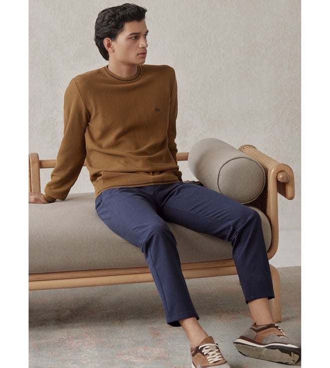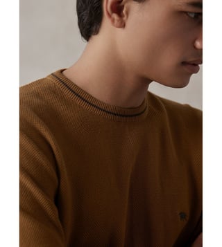Build your wardrobe with this pullover from the Art of Leisure collection. It is crafted from 100 percent cotton. It features Rajan, the mark of Andamen. Disclaimer: All other items in the image are only for display purposes and will not be a part of the delivery content. Product colour may slightly vary due to photographic lighting sources. Country of Origin - India.