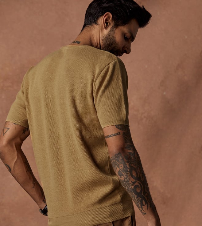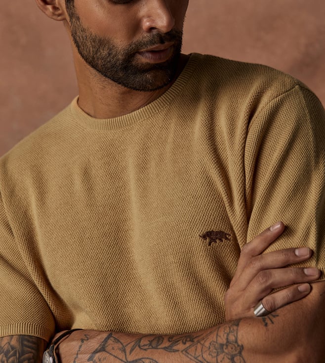 Andamen Beige Escape Men's Half Sleeve Crew Neck T-Shirt - Regular Fit