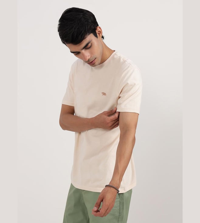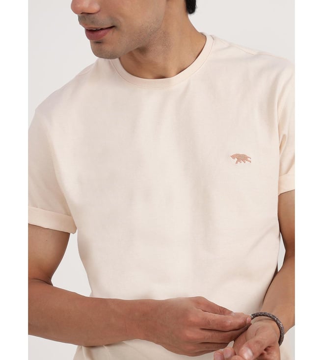 Andamen Beige Half Sleeve Gold Finish Crew Neck T-Shirt - Regular Fit
