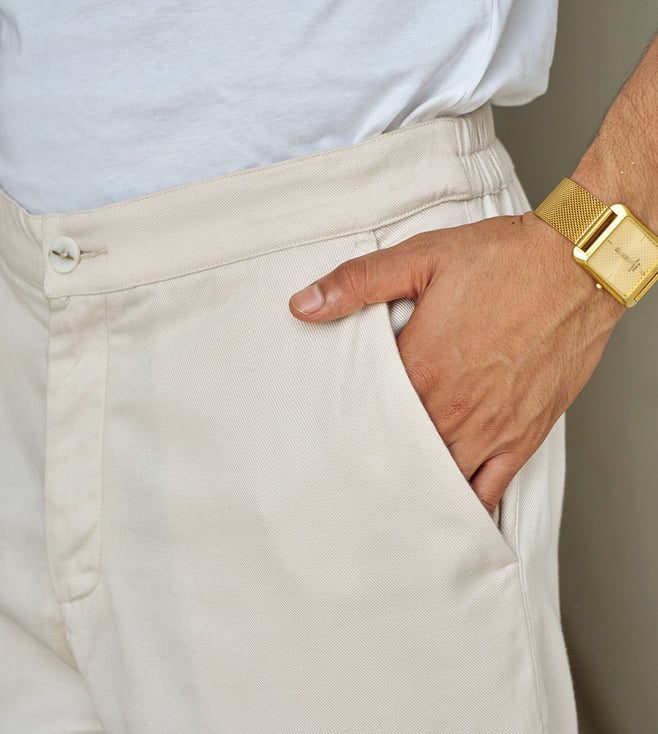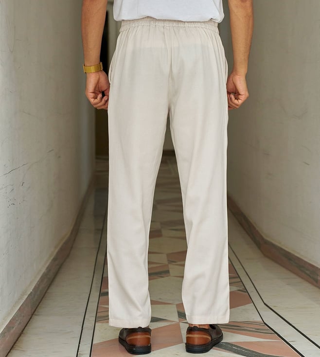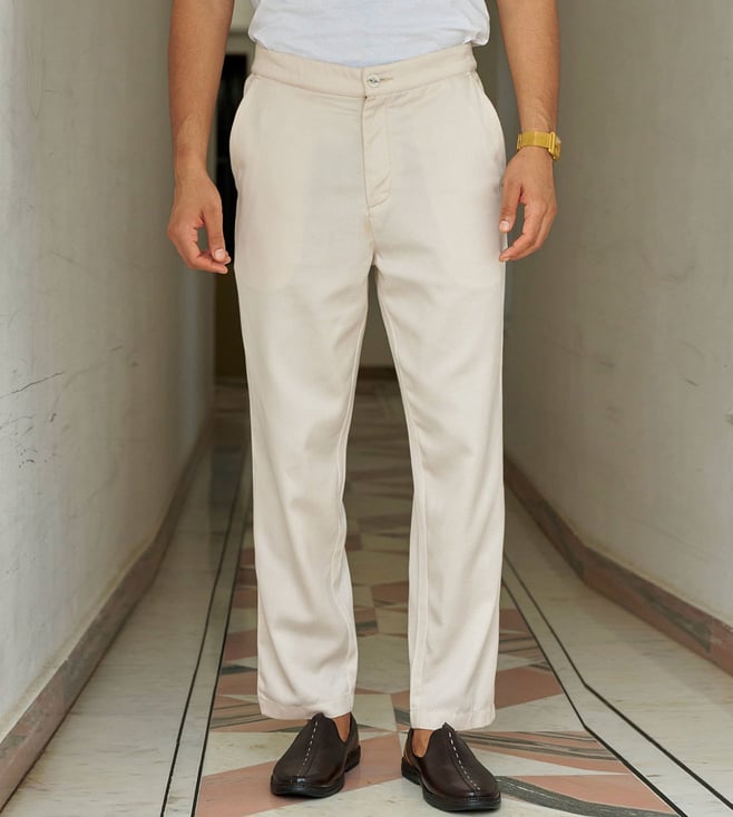 Andamen Beige Lyocell Regular Fit Woven Trousers