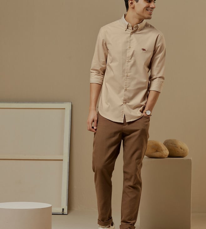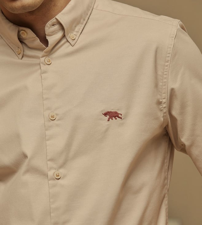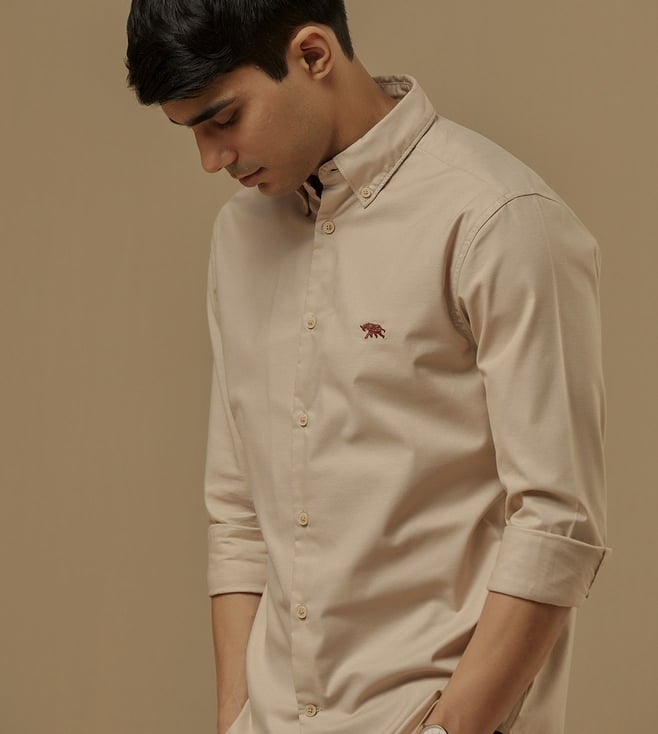 Andamen Beige Oxford Full Sleeve Button Down Shirt - Regular Fit