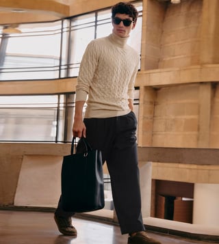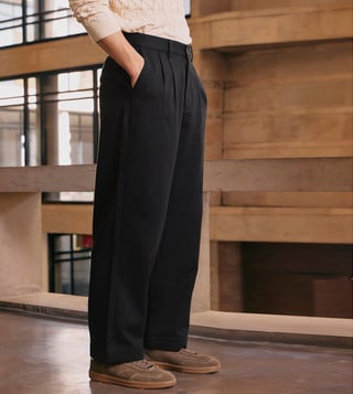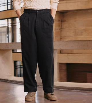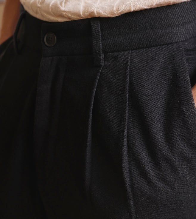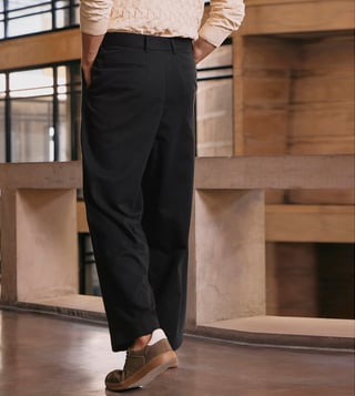 Cut in a straight-loose silhouette, these pleated cotton trousers redefine everyday ease. Crafted with a soft peach finish for subtle texture and movement, they deliver quiet structure with fluid comfort ¿ modern tailoring, made effortless.