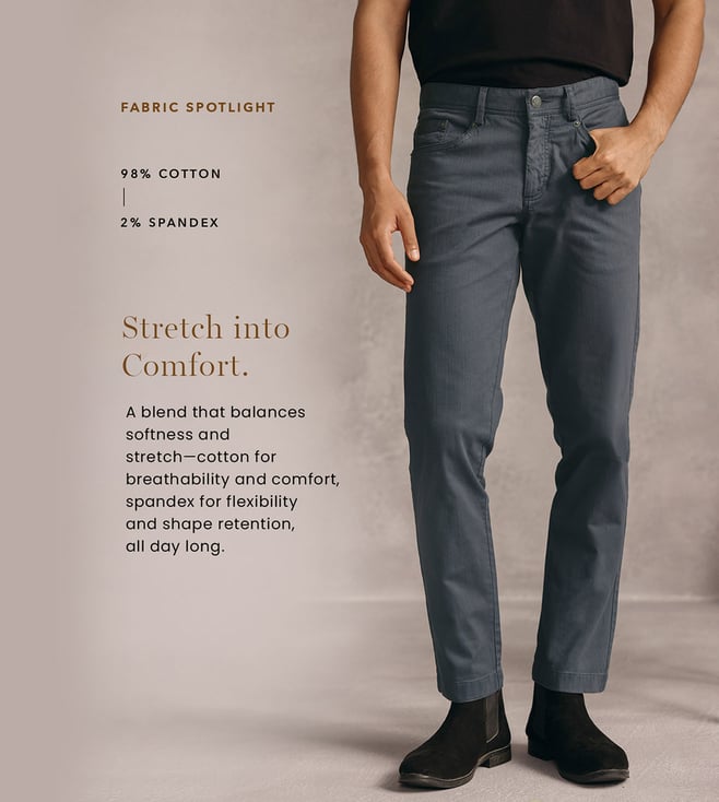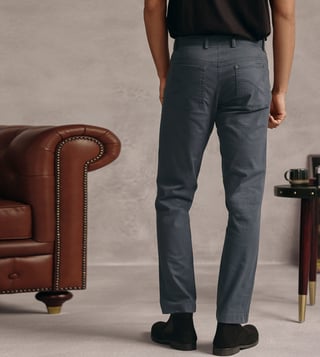 A chino in cotton-spandex with a rich overdye finish. Clean silhouette with multiple pockets for everyday versatility.