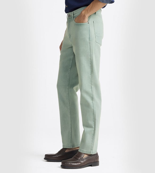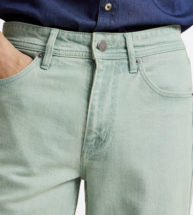 Andamen Green Cotton Regular Fit Embroidered Jeans