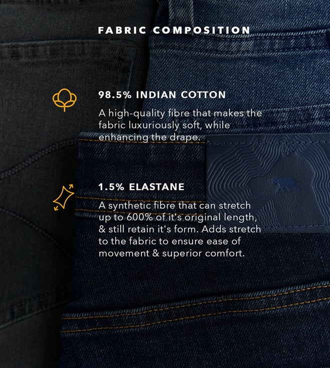 Introducing PureDenims by Andamen. Crafted from a cotton-elastane blend, this classic pair of jeans is luxuriously soft, incredibly durable, and perfect for the Indian climate. Featuring a bold new shade in a classic wash & a structured drape, these jeans add a timeless layer to your style. Meticulously designed for the modern Indian man, they offer the right amount of room in the hips and thighs for guaranteed comfort. The tapered calves refine the silhouette, adding subtle sophistication to the garment. Crafted to last for years to come. Proudly made in India.