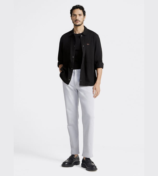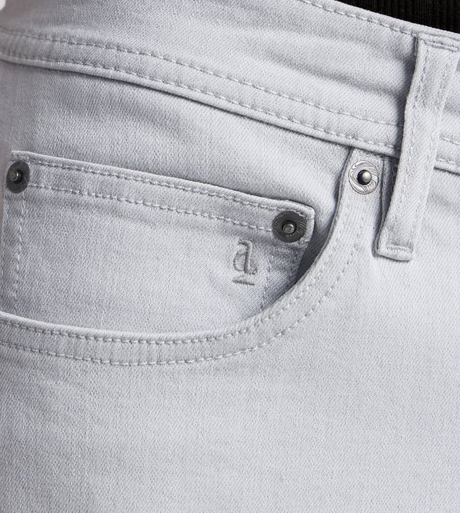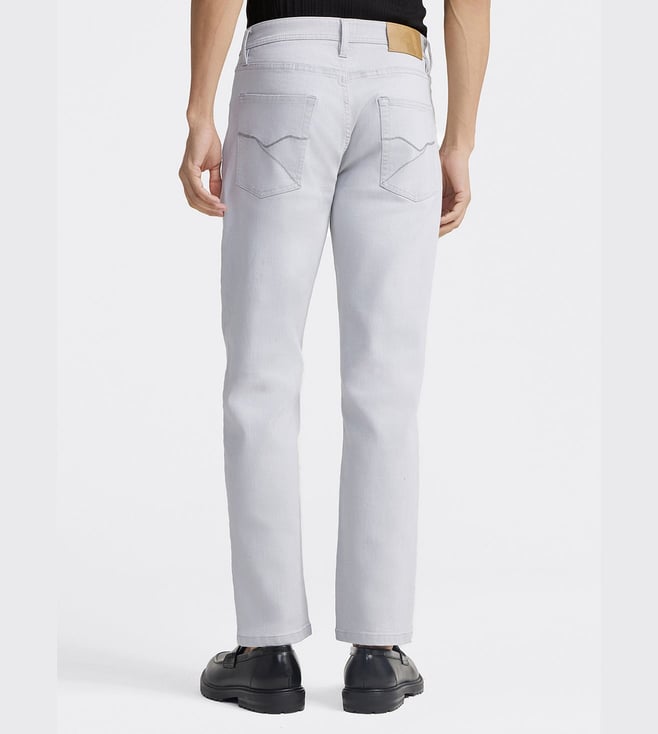 Andamen Grey Cotton Regular Fit Embroidered Jeans