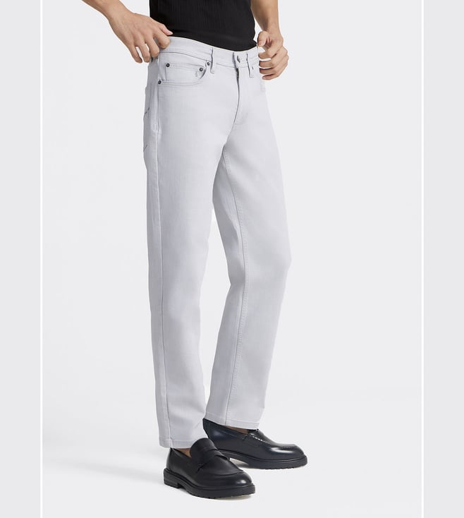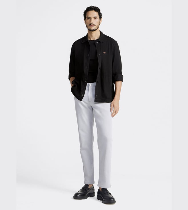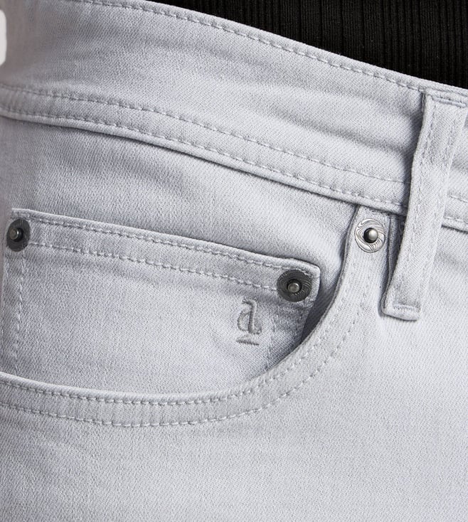 Andamen Grey Cotton Slim Fit Embroidered Jeans