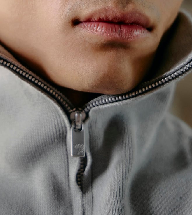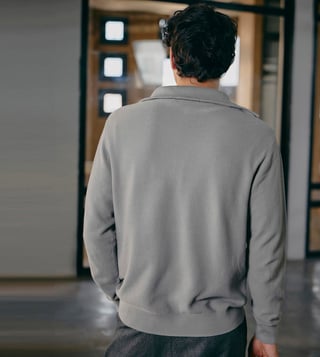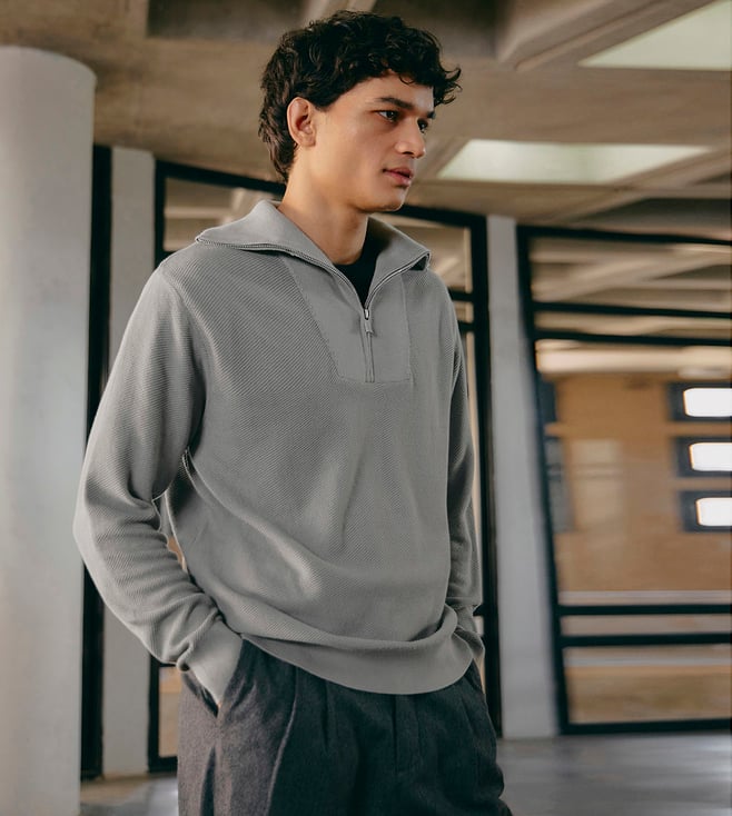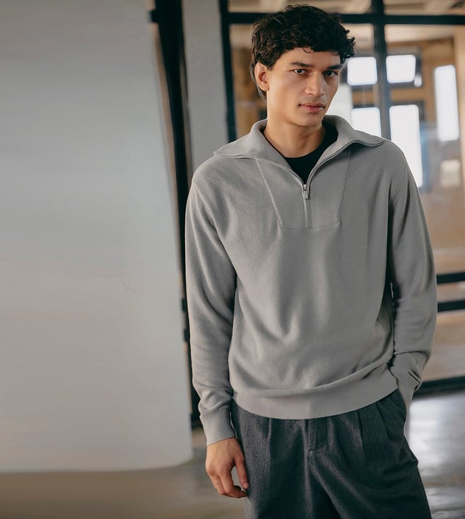 Andamen Grey Structured Fabric Cotton Flat Knit Relaxed Pullover
